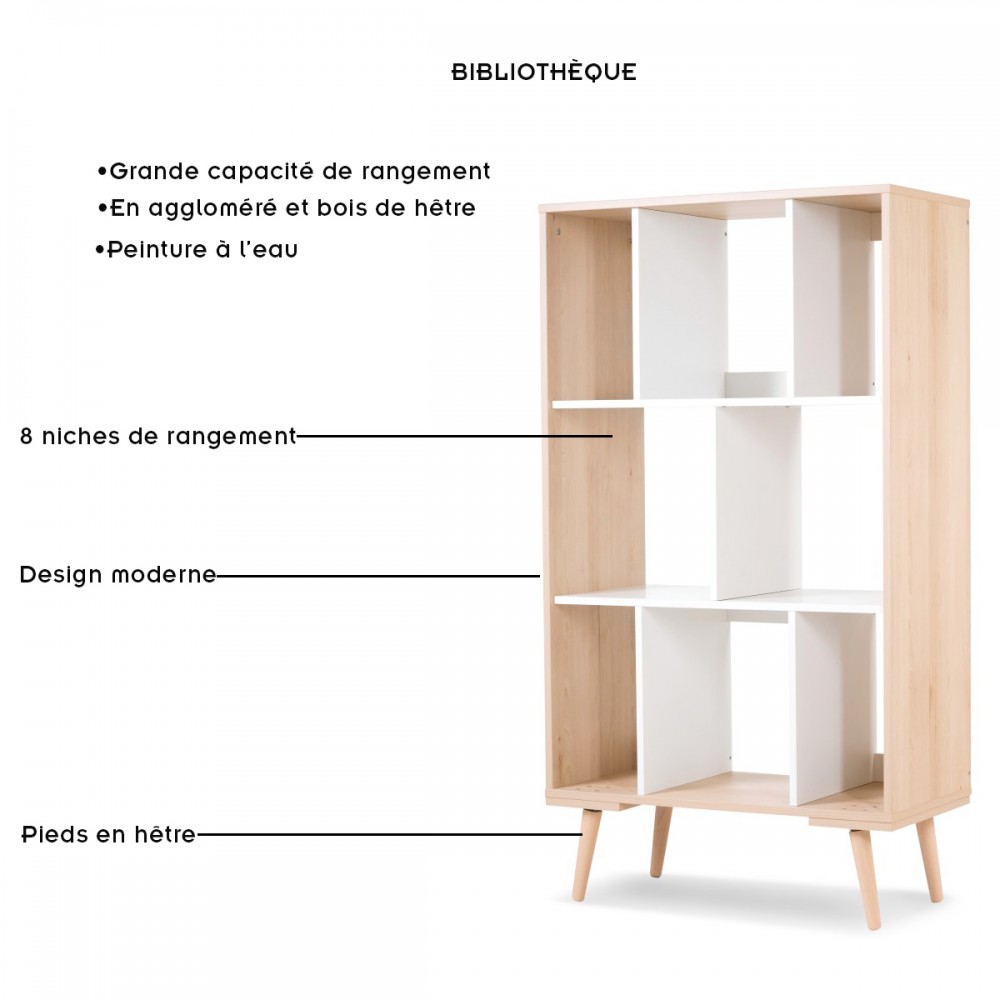 | bulletpointA | Bibliothèque avec pieds en hêtre de style scandinave. |