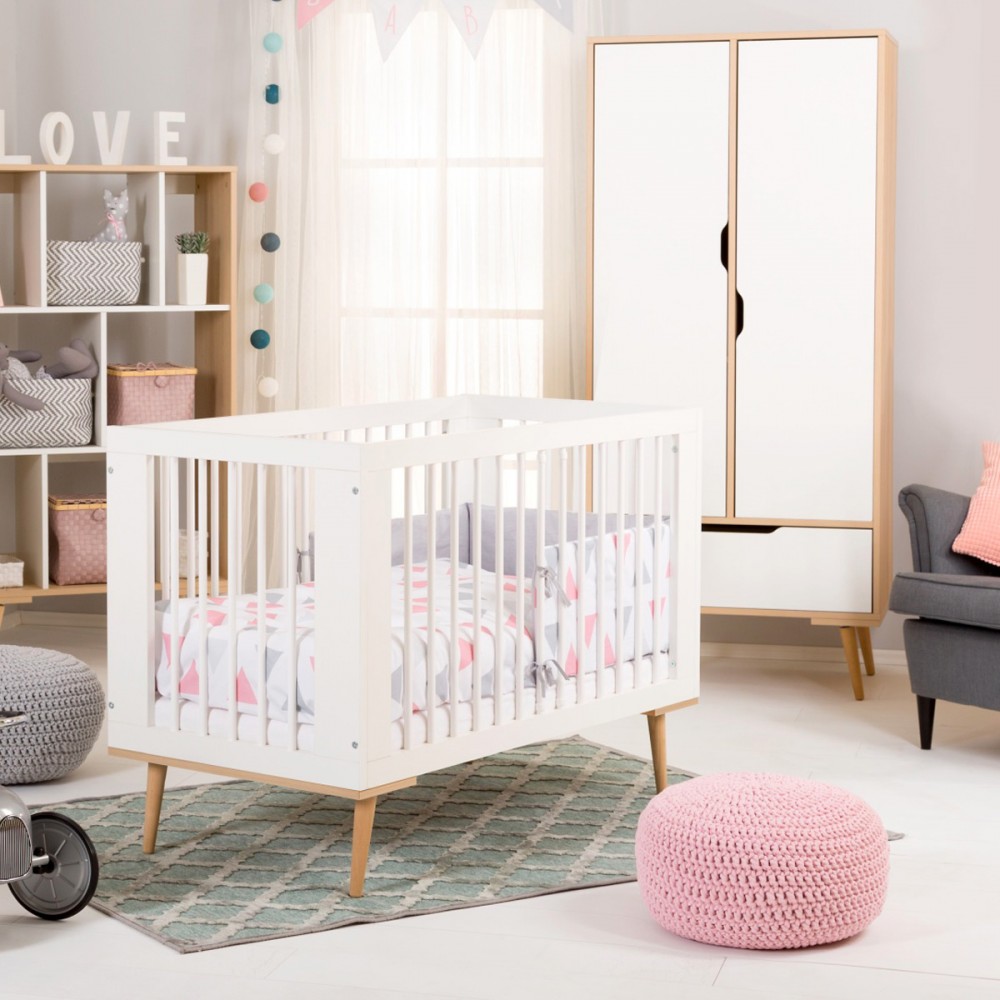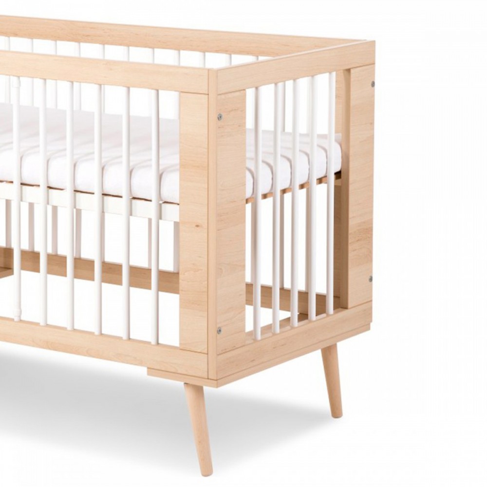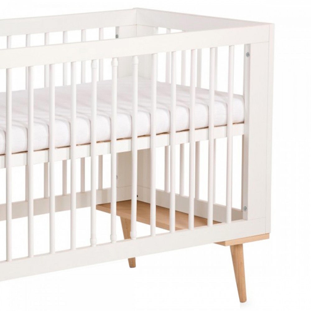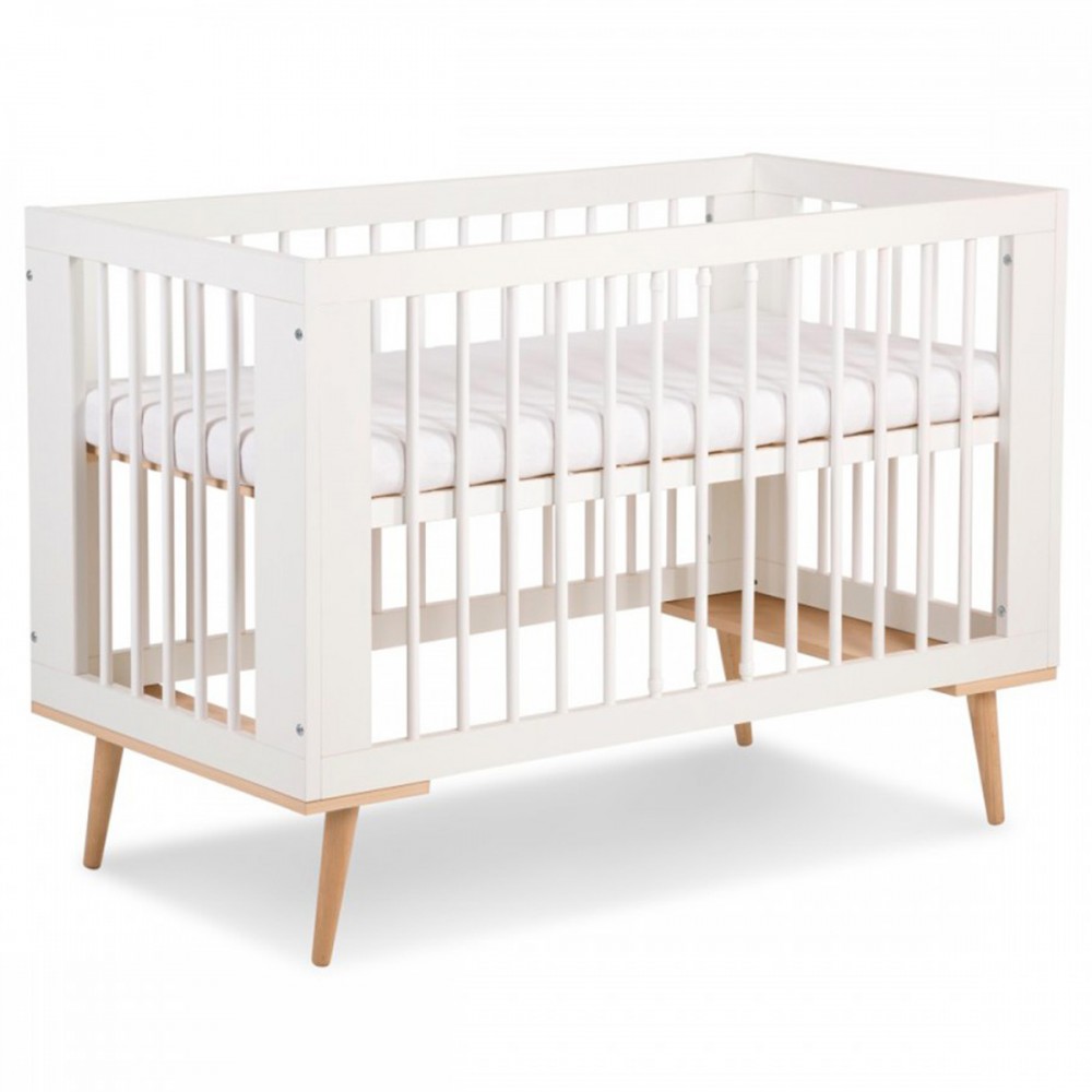 | bulletpointB | Lit 120x60 cm avec sommier à lattes réglable et barreaux amovibles. 2 modèles : blanc ou hêtre. |
