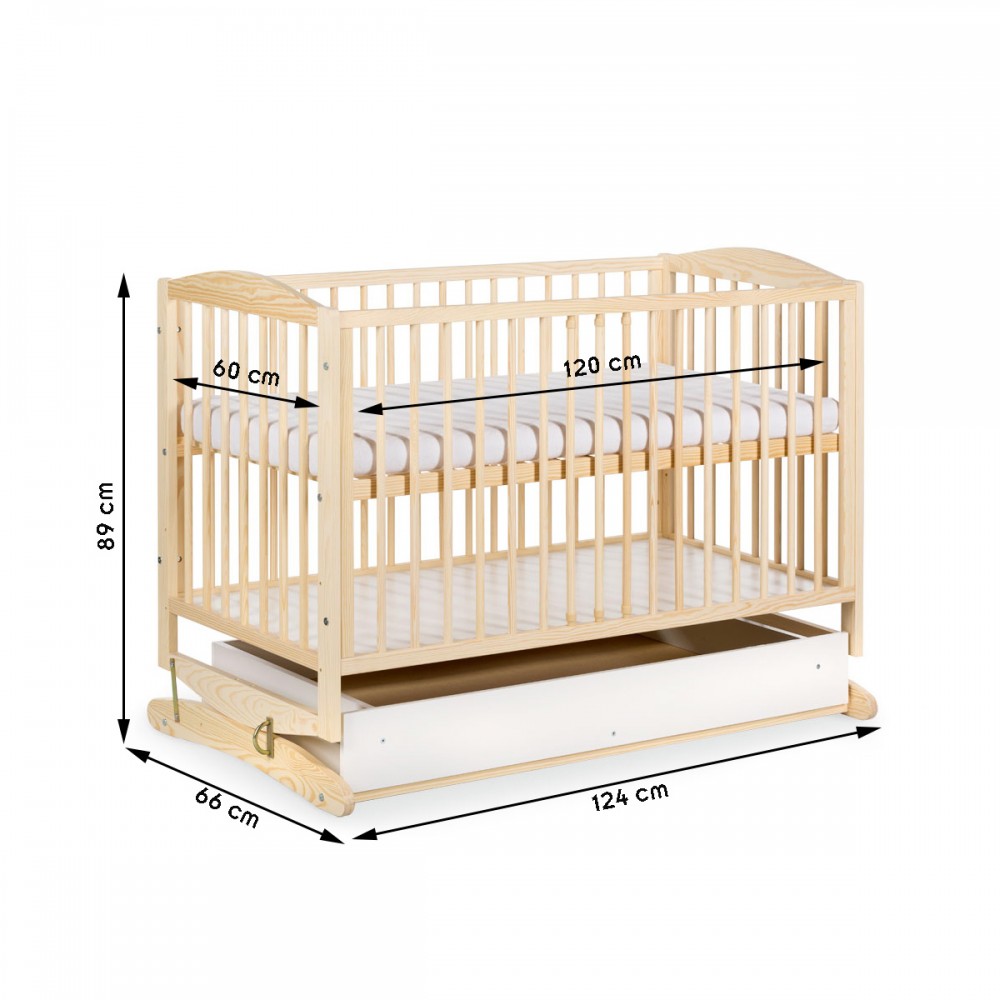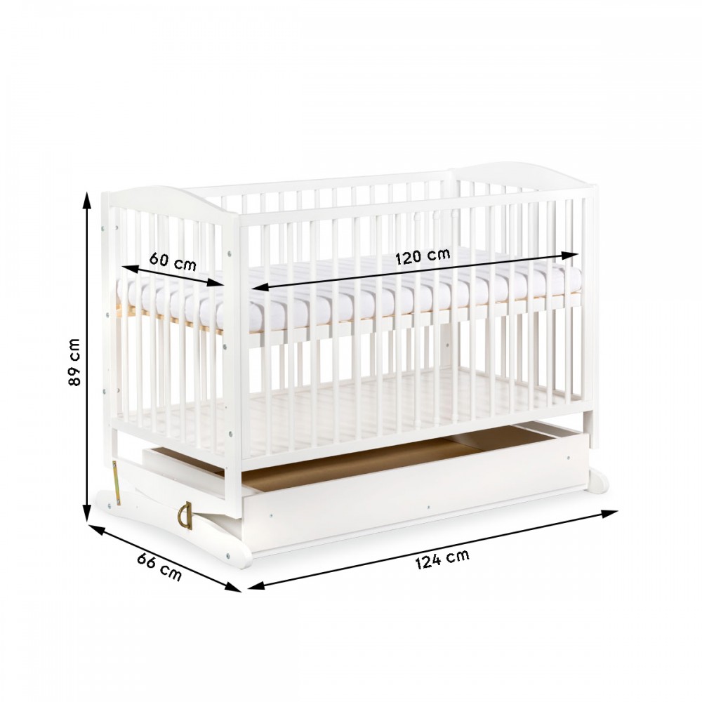 Dimensions extérieures du lit : L 124 x l 66 x H 89 cm.
