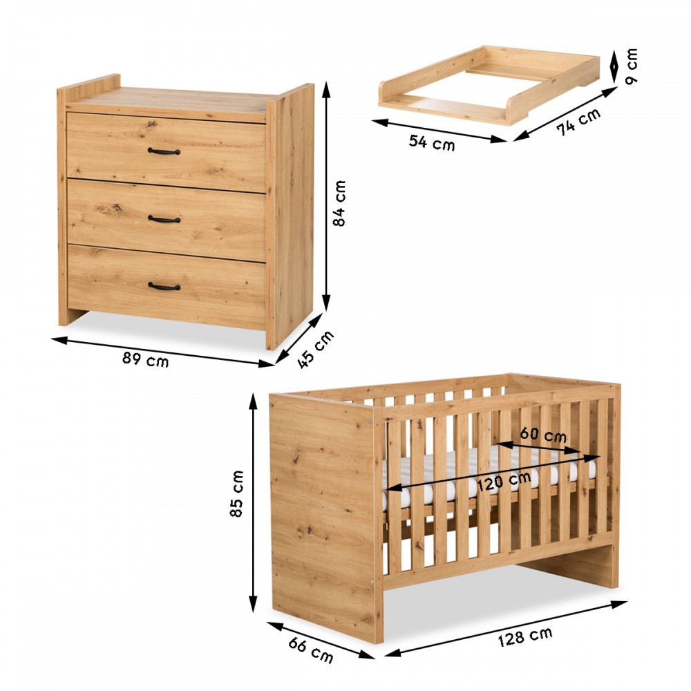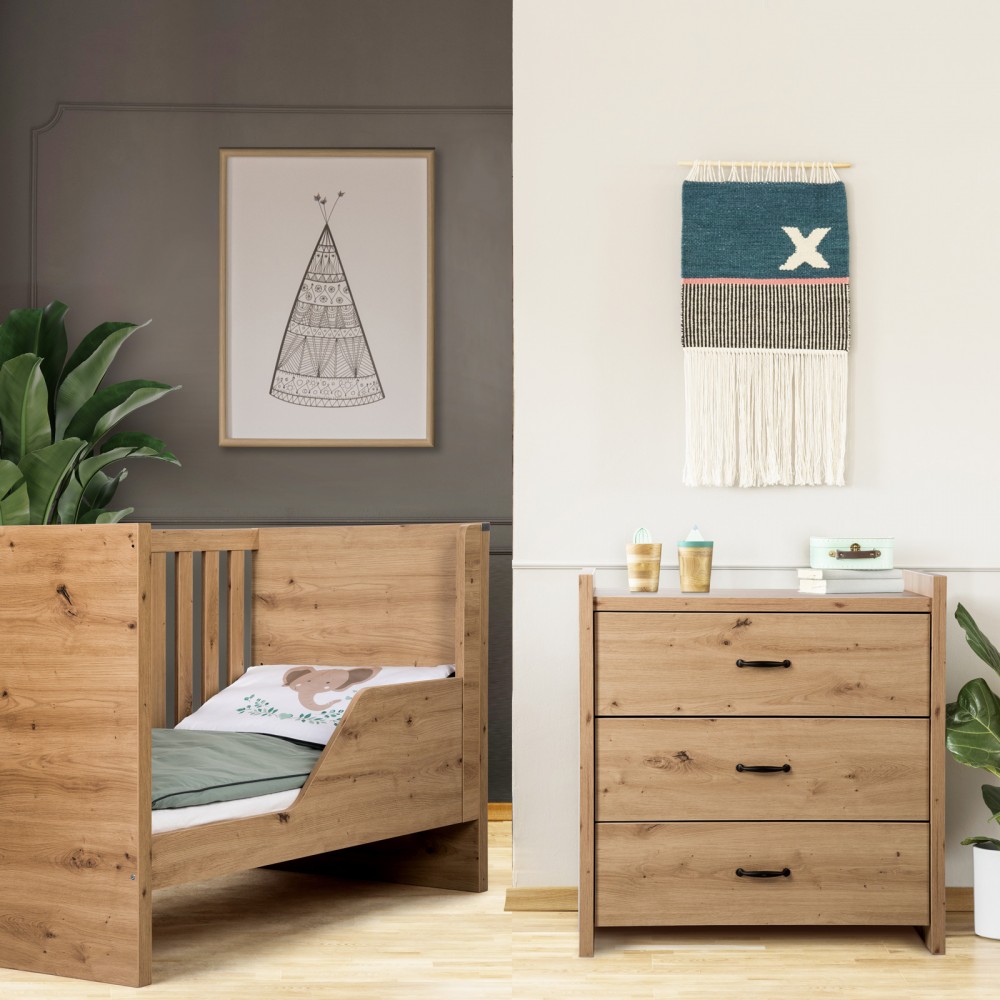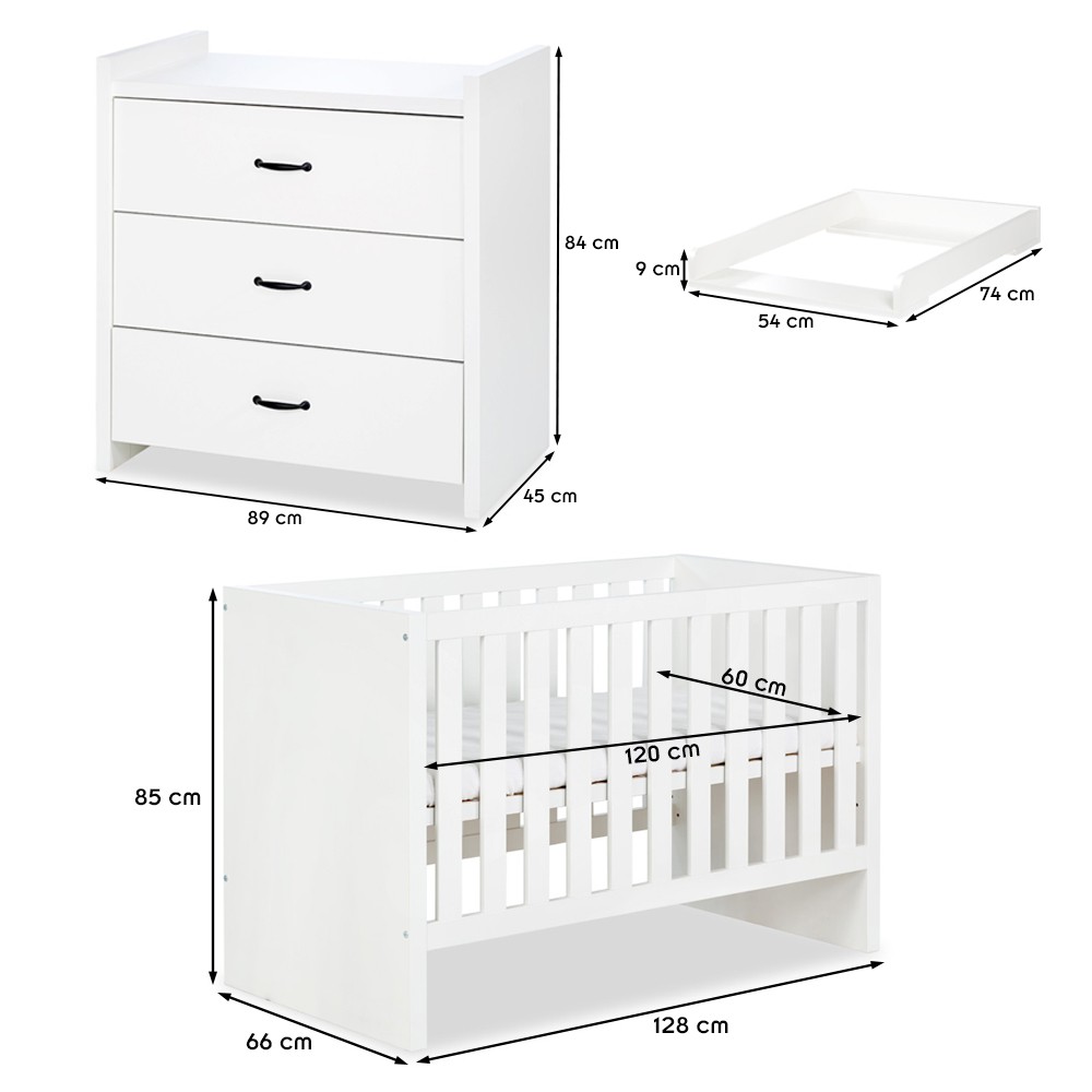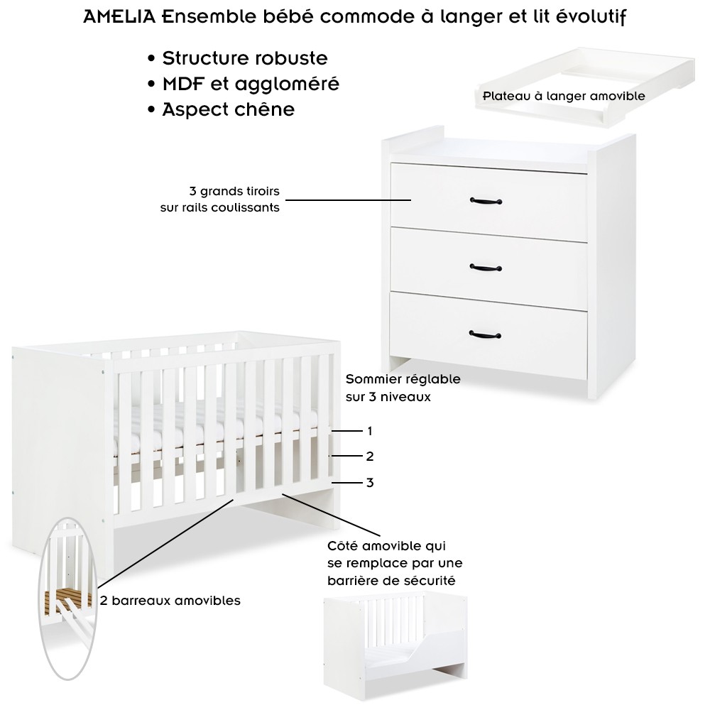 | bulletpointA | Ensemble lit évolutif 120 x 60 cm et commode à langer 3 tiroirs. |