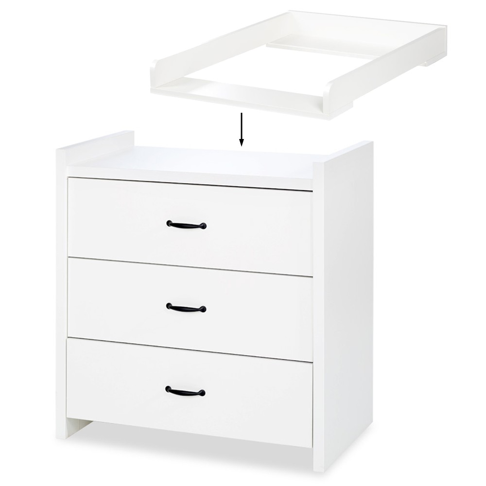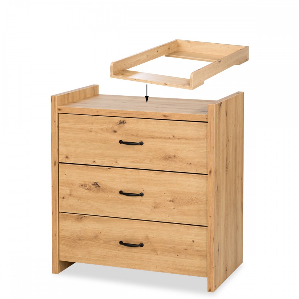 | bulletpointD | La commode possède 3 tiroirs spacieux coulissants. Le plateau à langer s'enlève lorsque l'enfant grandit. |