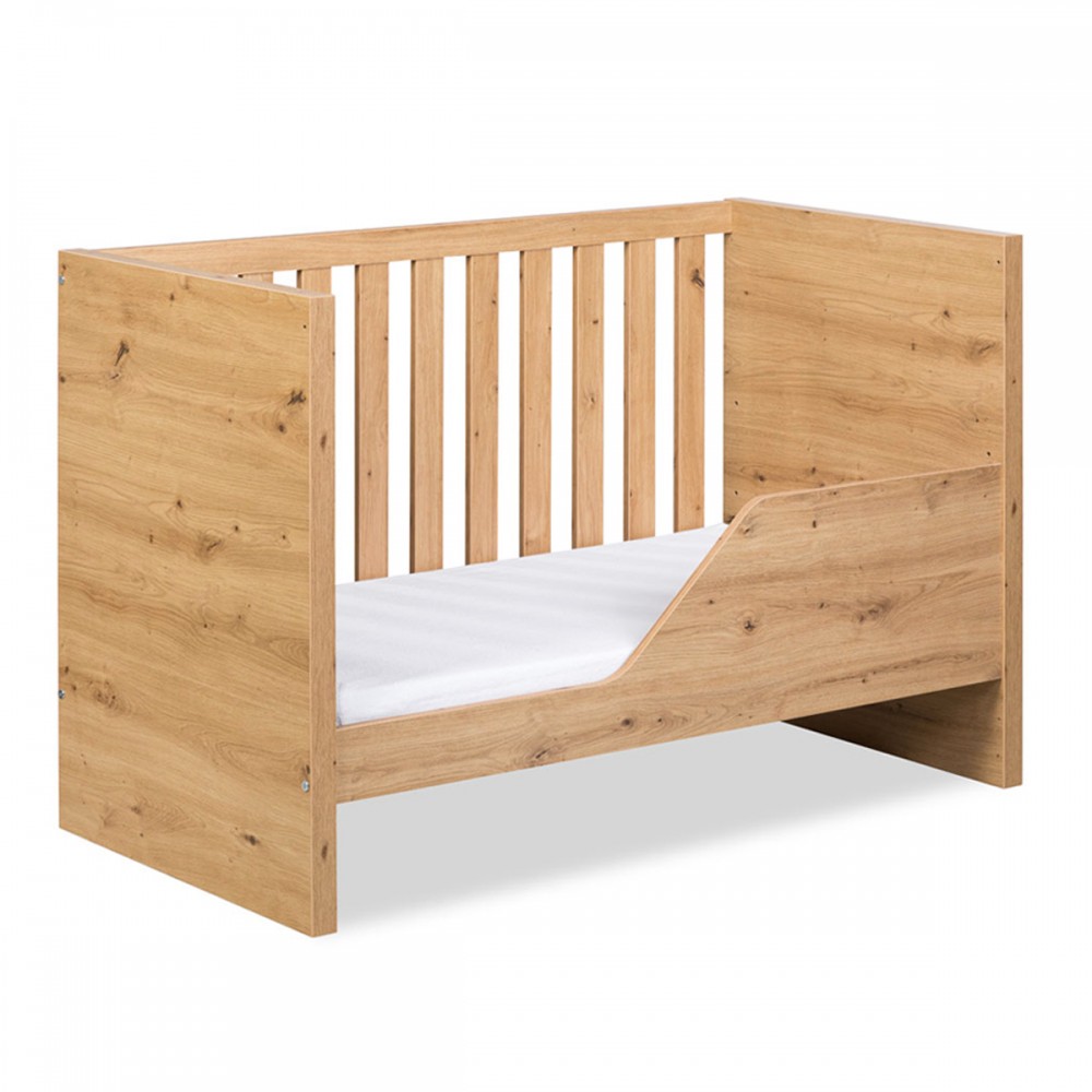 Ce lit à barreaux plats, de dimensions 120 cm x 60 cm, possède un sommier à lattes réglable sur 3 niveaux. Ce réglage permet d’adapter la hauteur du sommier à la croissance de l’enfant.