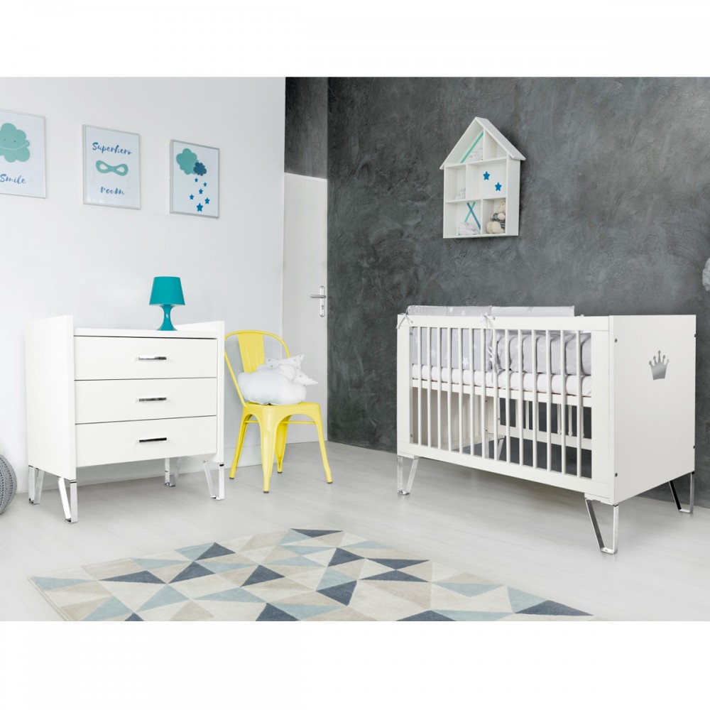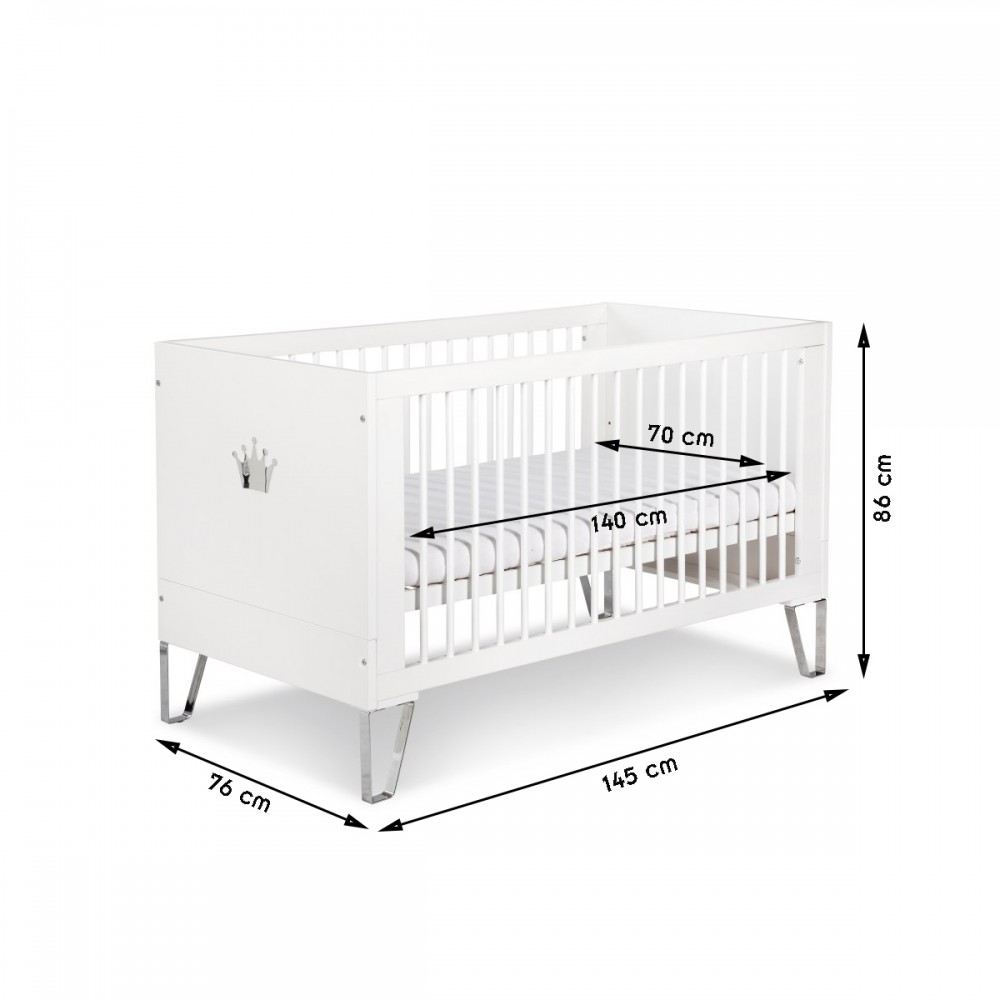 | bulletpointA | Lit bébé transformable en lit enfant 140x70. Le lit à barreaux possède un sommier réglable sur 3 niveaux. |
