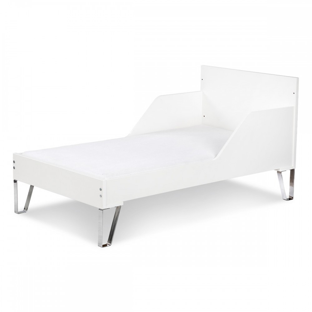 Ce lit évolutif allie le bois et le métal avec ses pieds en métal chromé, un design moderne pour accompagner votre enfant pendant de nombreuses années.