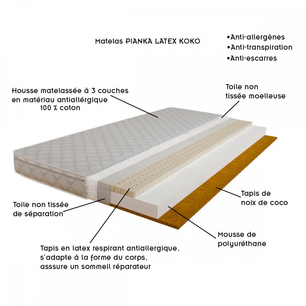 | bulletpointC | Plusieurs modèles de matelas au choix, ils possèdent la housse amovible et lavable. |
