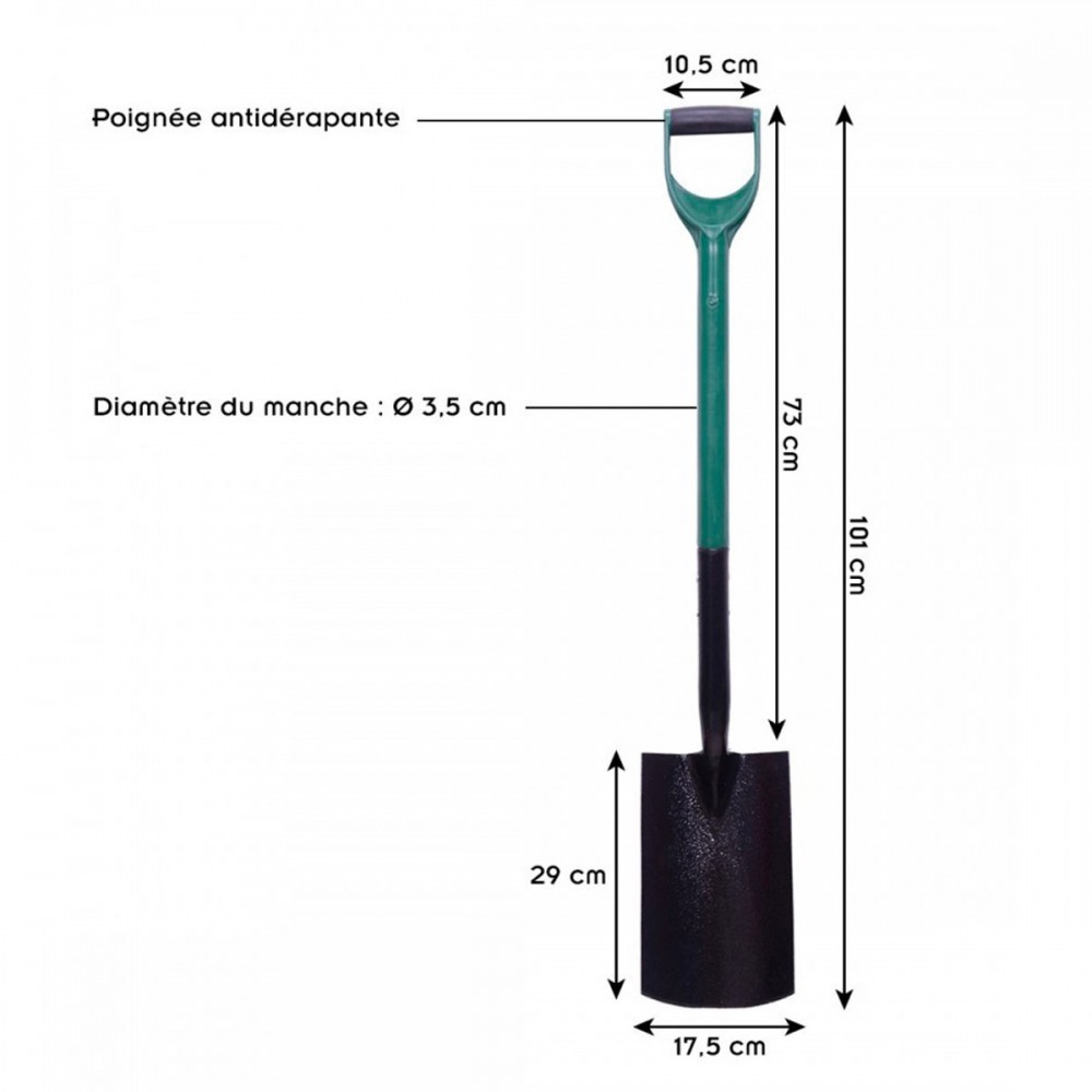 Cette pelle légère et robuste est idéale pour creuser, manipuler et déplacer de la terre, du sable, du terreau. Des appuie-pieds facilitent le confort d'utilisation de cette pelle. 2,05 kg.