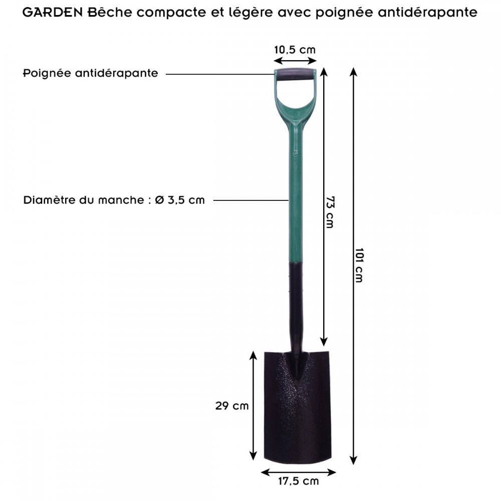 | bulletpointA | Bêche à rebord légère et robuste idéale pour retourner la terre. |