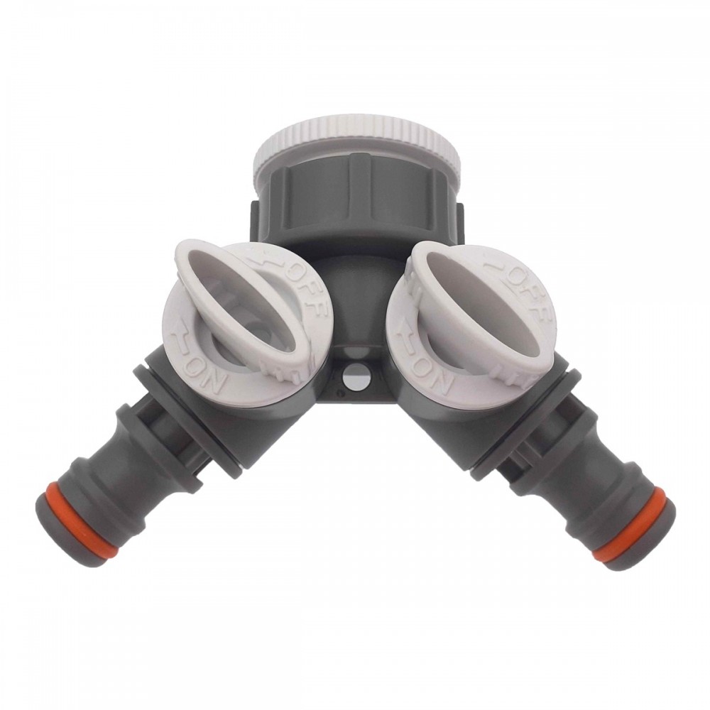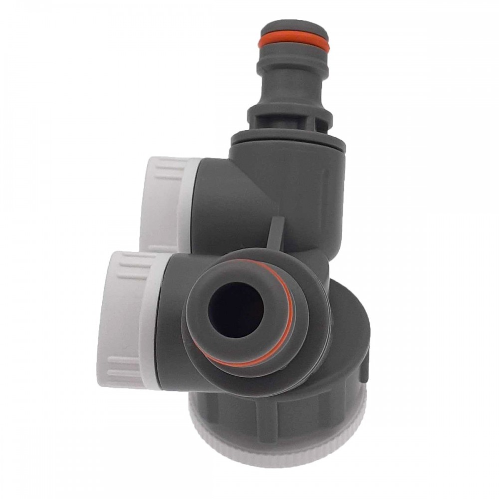 Grâce à ses 2 sorties, ce raccord permet d’avoir deux points d’arrosage à partir d’un seul robinet.