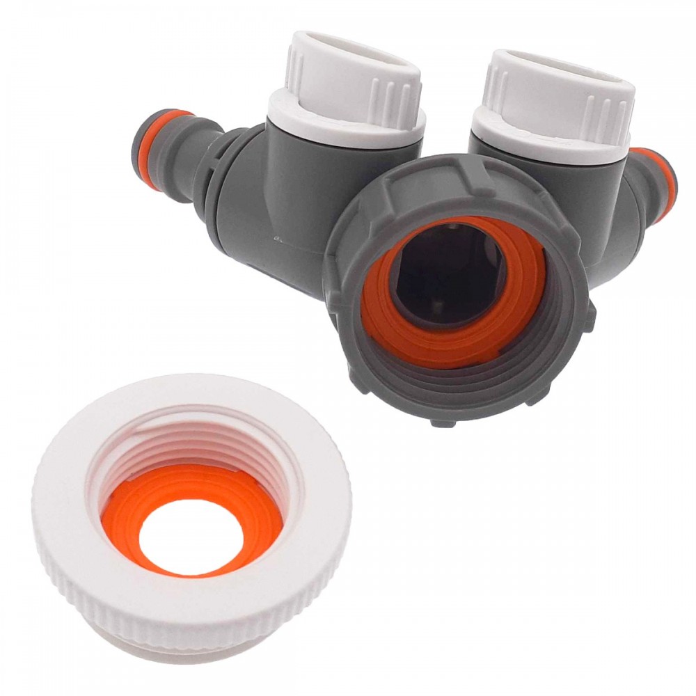 Distributeur d’eau 2 sorties pour robinet 3/4" avec réduction à 1".