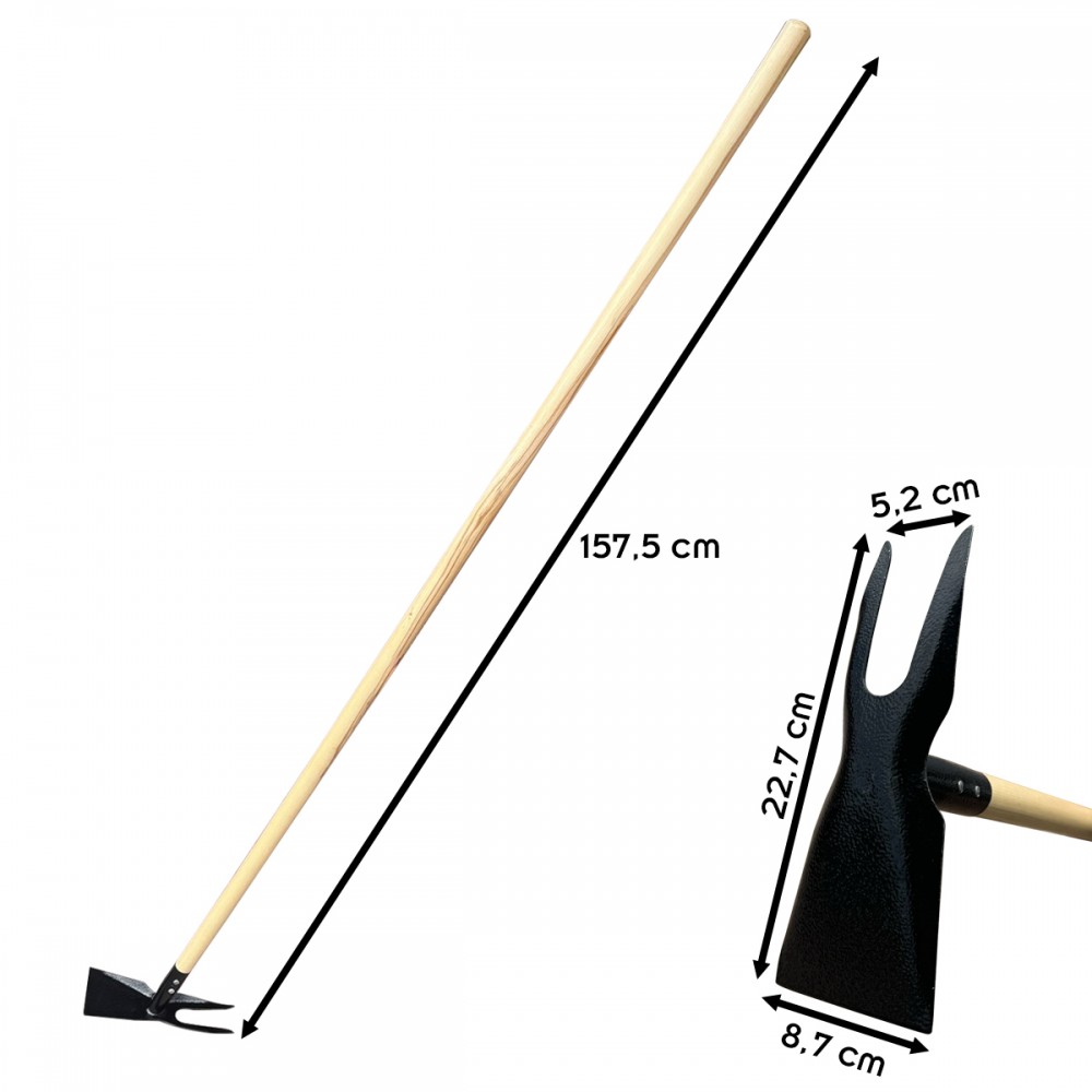 | bulletpointA | 1 côté carré et l'autre muni de 2 dents solides et maniables. Parfait pour les travaux de force pour le jardin. |