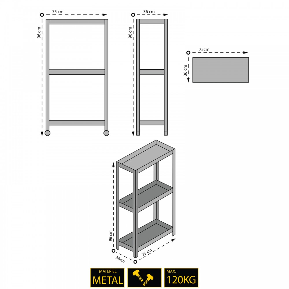 | bulletpointA | Ce chariot d'atelier est fabriqué en métal et dispose de 3 étagères. La hauteur de l'étagère du milieu est réglable. |