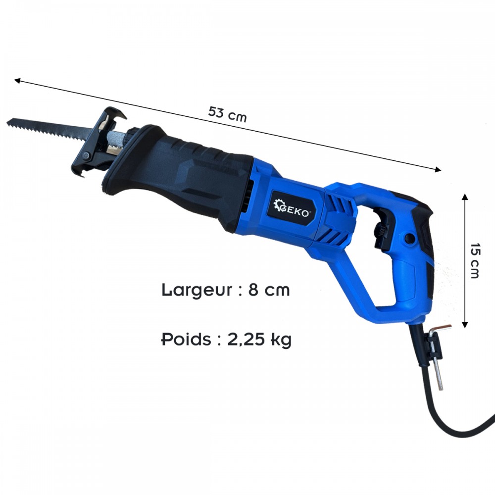 Cette scie sabre est un outil de coupe puissant et efficace, conçu pour des travaux de bricolage et de construction.