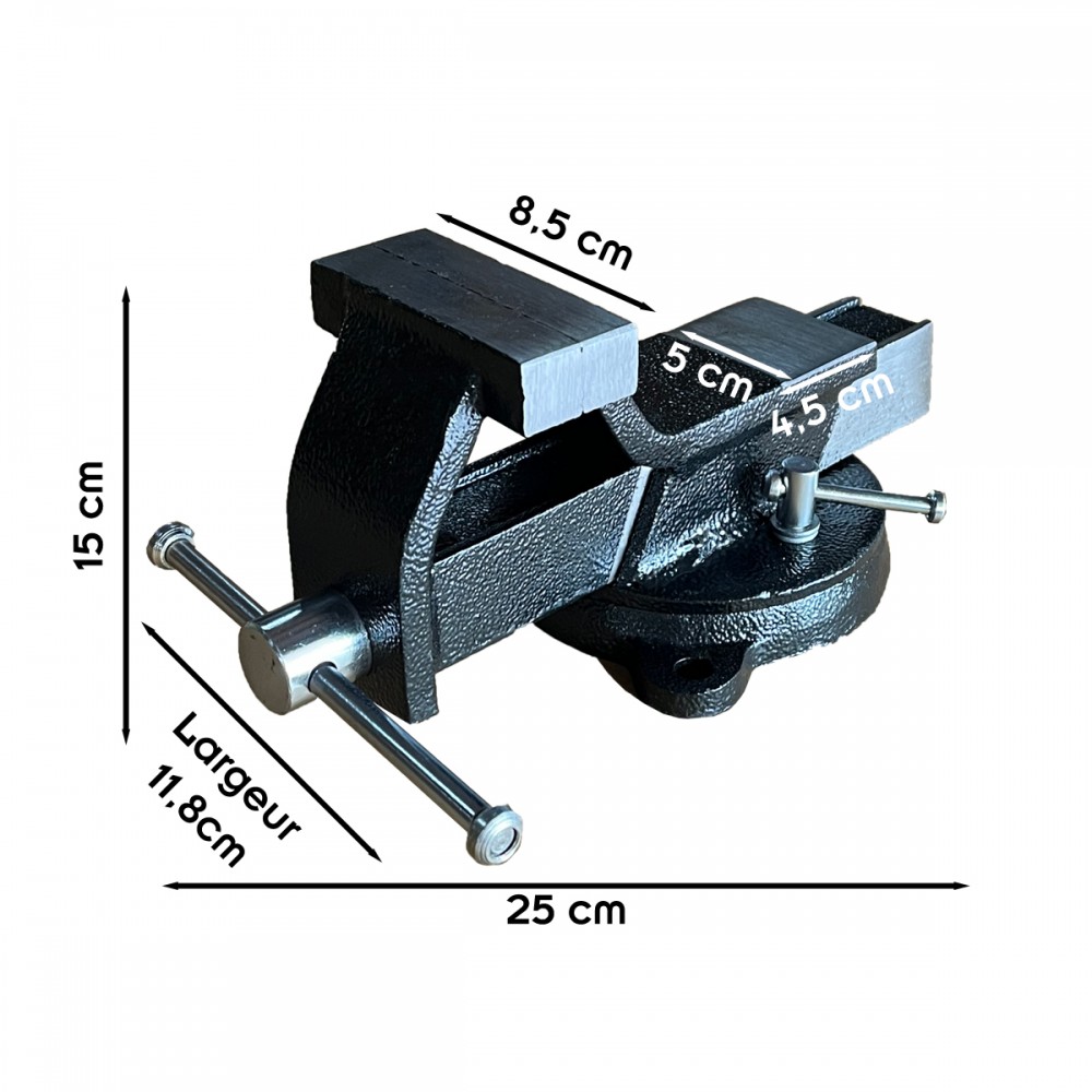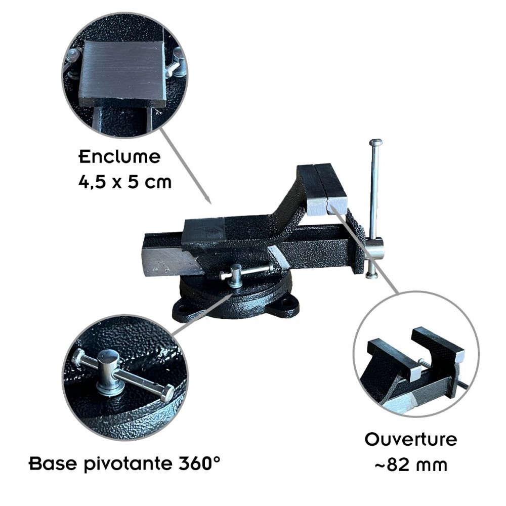 Pour les bricoleurs occasionnels comme réguliers, l'étau est un outil indispensable de l'établi. Celui-ci est disponible en 3 tailles en fonction des besoins et de la place disponible (largeur des mors 80, 100, ou 200 mm).