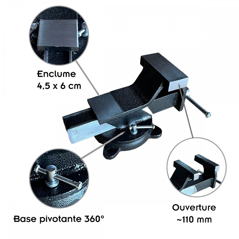Cet étau dispose d'une ouverture de mâchoire moletée qui favorise la tenue de tous types de matériaux.