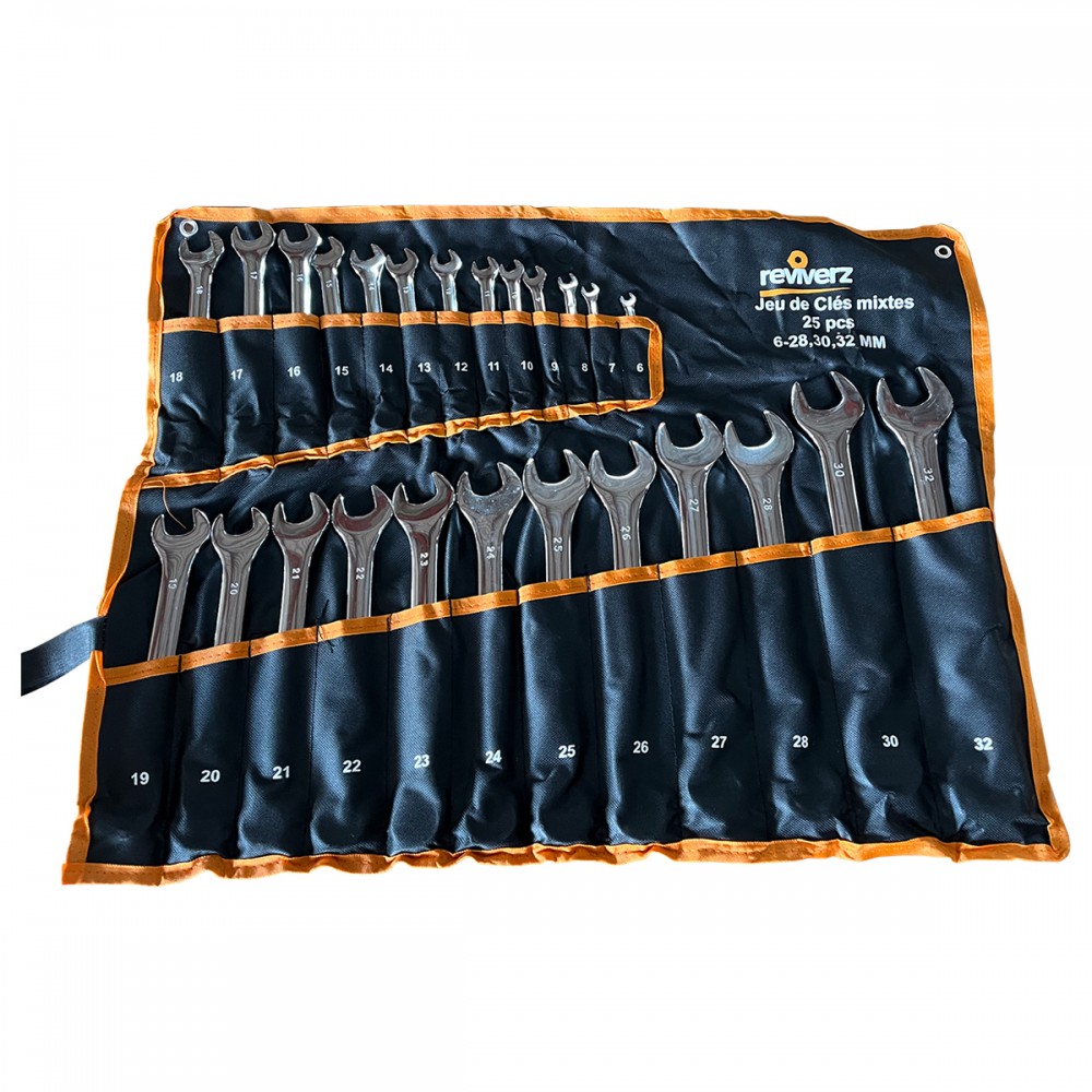 Jeu de 25 clés : clés de 6, 7, 8, 9, 10, 11, 12, 13, 14, 15, 16, 17, 18, 19, 20, 21, 22, 23, 24, 25 ,26, 27, 28, 30, 32.
