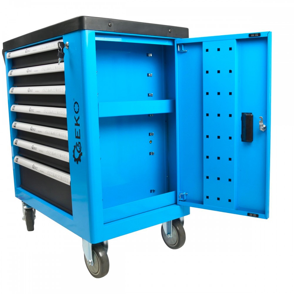 Cette servante 7 tiroirs avec 243 outils de bricolage (en chrome vanadium) convient aussi bien aux professionnels qu'aux amateurs. Elle permet d'accéder facilement à votre collection d'outils et de les ranger une fois terminé. Tous les tiroirs de cette servante sont équipés de glissières à roulement à billes, garantissant une ouverture/fermeture sans à-coups. Sur le dessus de la servante, un plateau permet de disposer les outils en cours d'utilisation. La servante est équipée d'une poignée de transport, ainsi que de 4 roues, dont 2 freinées (roues avants). La servante est équipée d'un système de verrouillage à clé. Le cadre de cette servante est revêtu d'une couche de peinture qui la protège contre la corrosion.