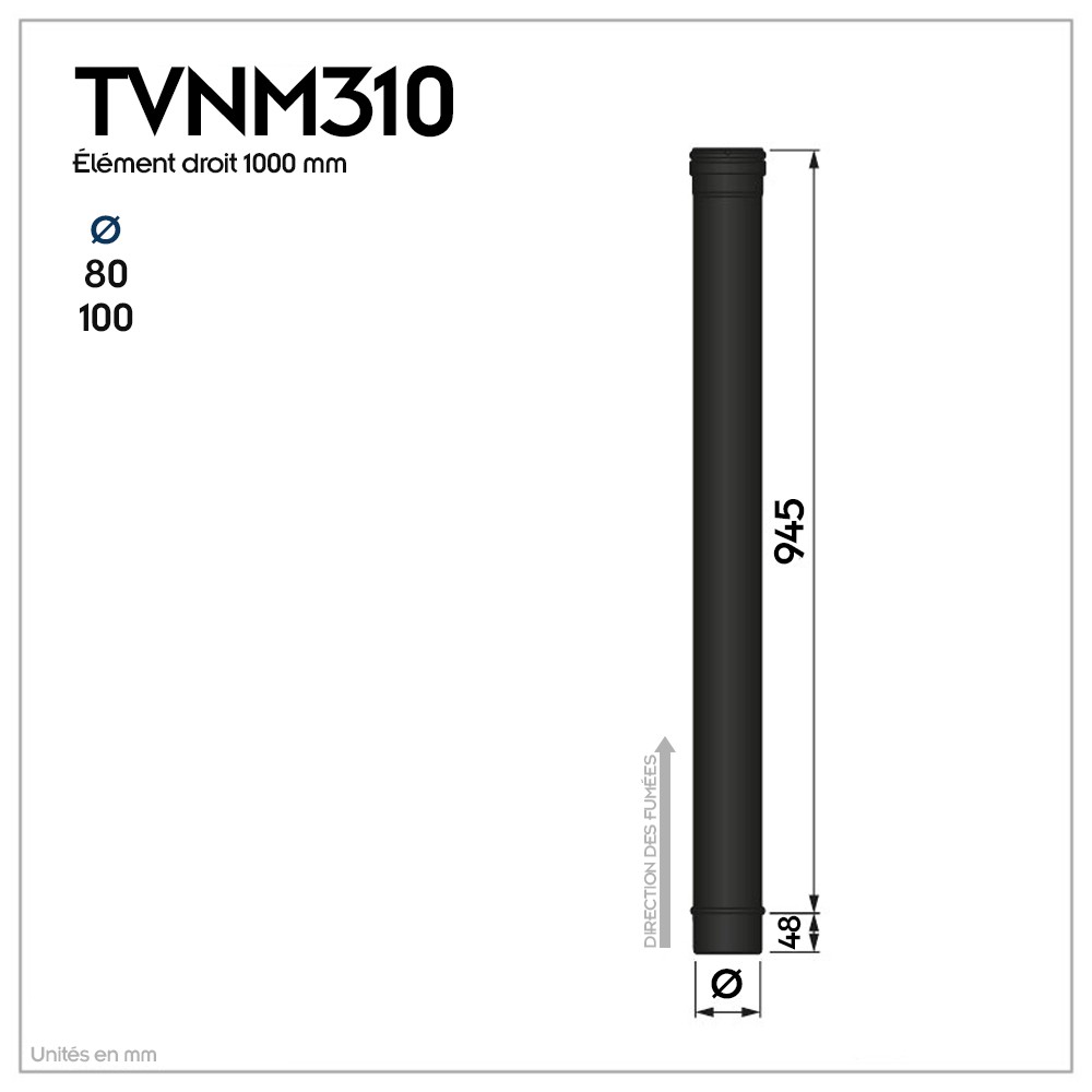 | bulletpointA | Conduit simple paroi étanche en acier émaillé noir polycombustible. |