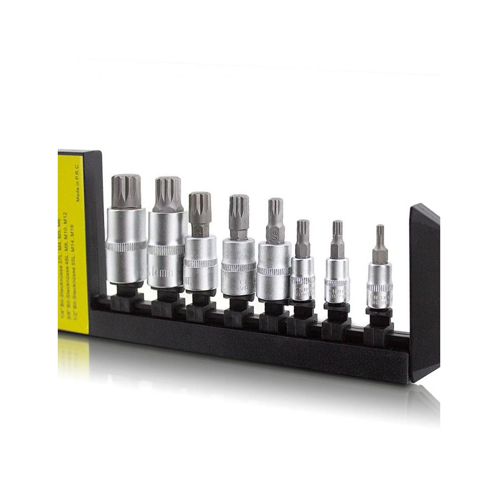 Fabriqué en acier au chrome-vanadium pour la résistance et la durabilité 1/4" 3/8" et 1/2" de manière à s'adapter à n'importe quelle cliquet standard.