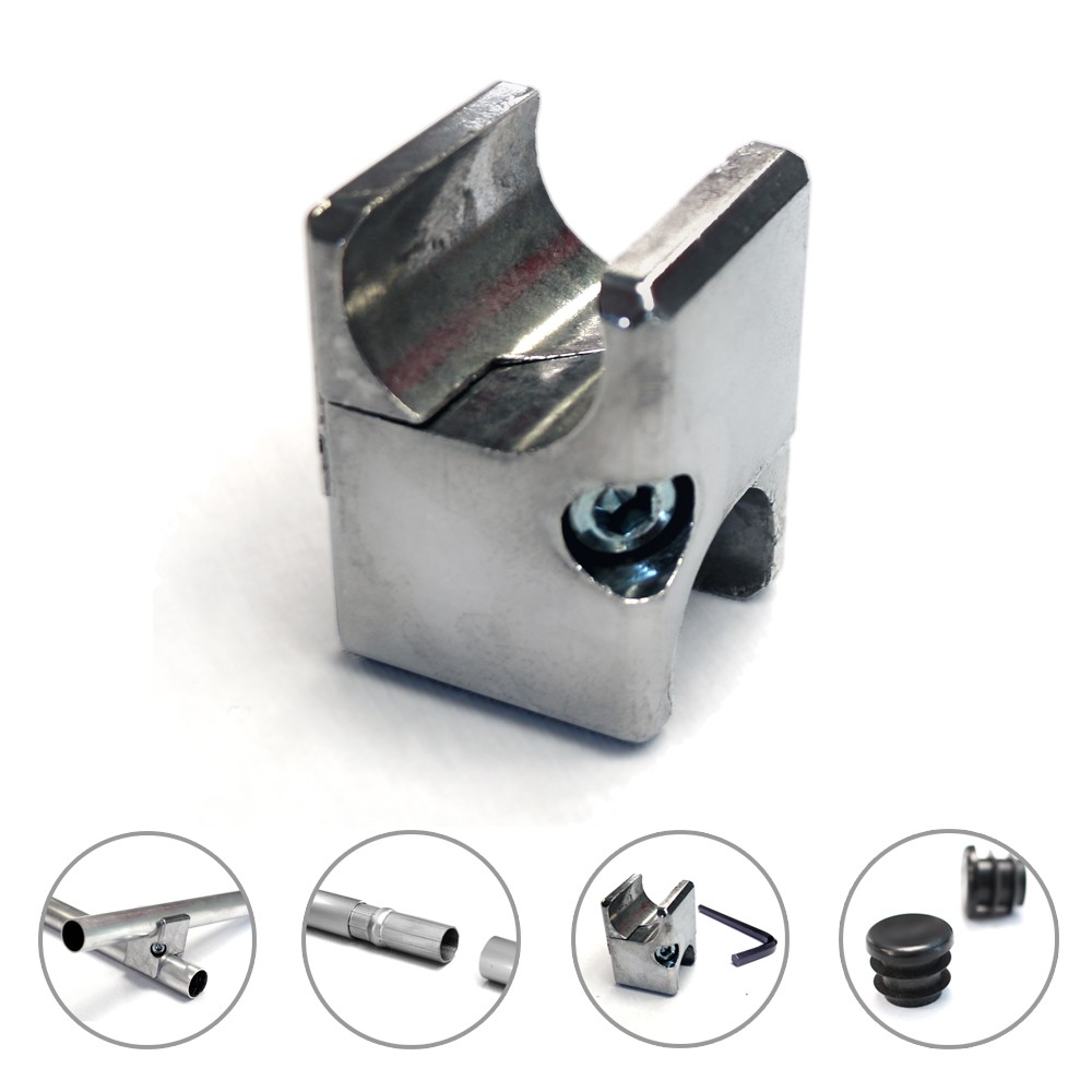 Ce raccord universel permet d'assembler les tubes aluminium Creatube pour créer facilement toutes sortes de structures tubulaires comme : escalier, échafaudage, étagère, bibliothèque, clôture, portail, table etc...