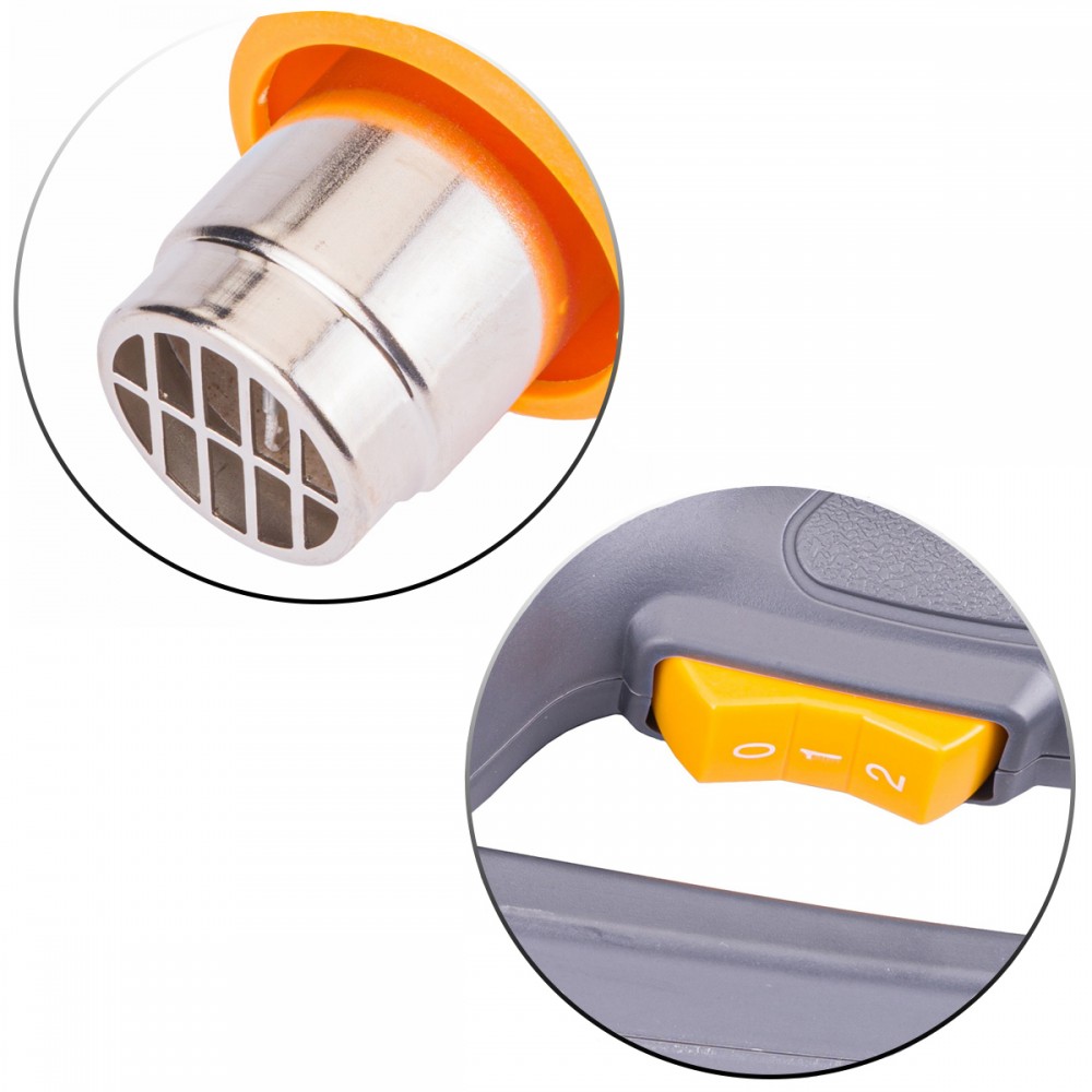 Léger et simple d'utilisation, ce pistolet thermique est doté d'un interrupteur à 3 crans qui permettra de régler la température à 350°C ou 600°C au maximum. Un embout en caoutchouc est présent sur le câble afin de le protéger contre les torsions.