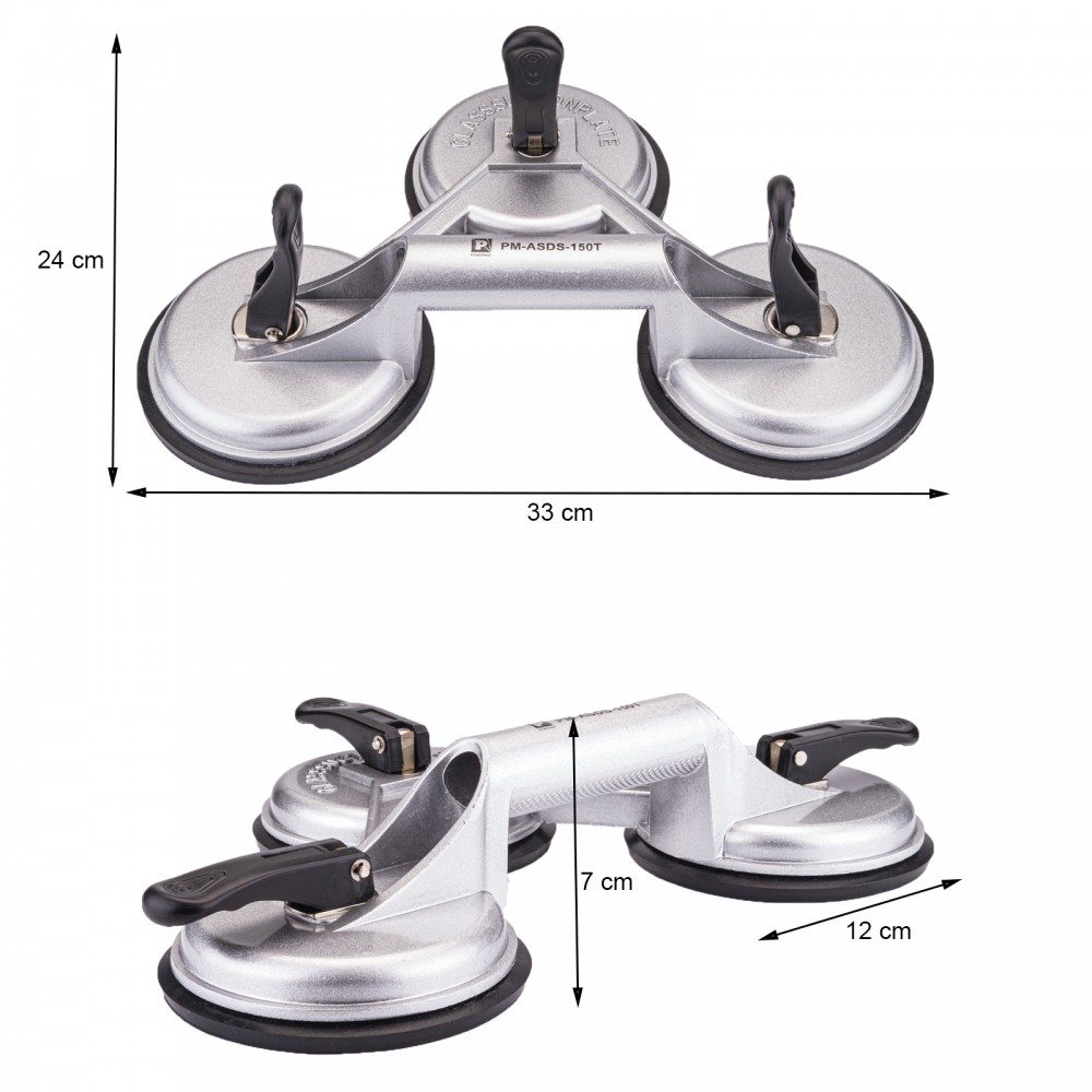 Composé de 3 ventouses reliées par une poignée, cet extracteur peut supporter jusqu'à 150 kg. Chaque ventouse a un diamètre de 12 cm. Le corps du produit est en aluminium robuste. Le caoutchouc de haute qualité de la ventouse garantit une manipulation sûre et sécurisée des éléments.