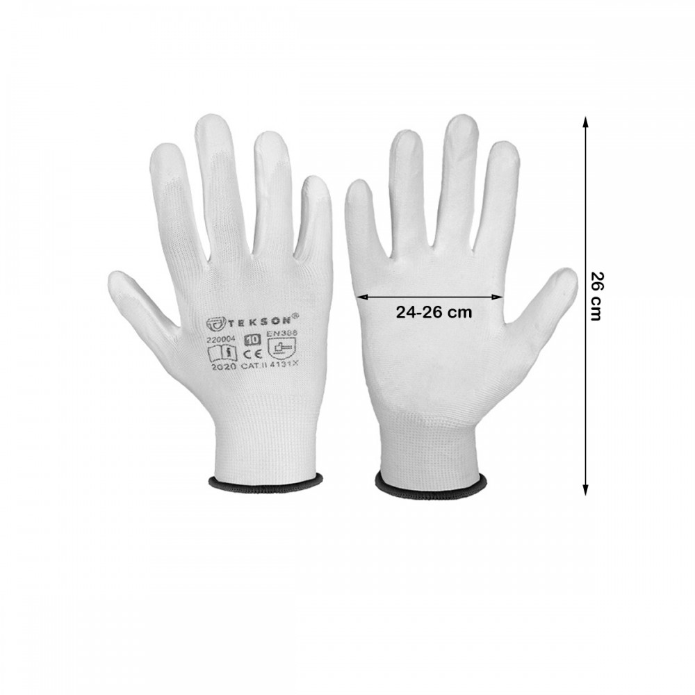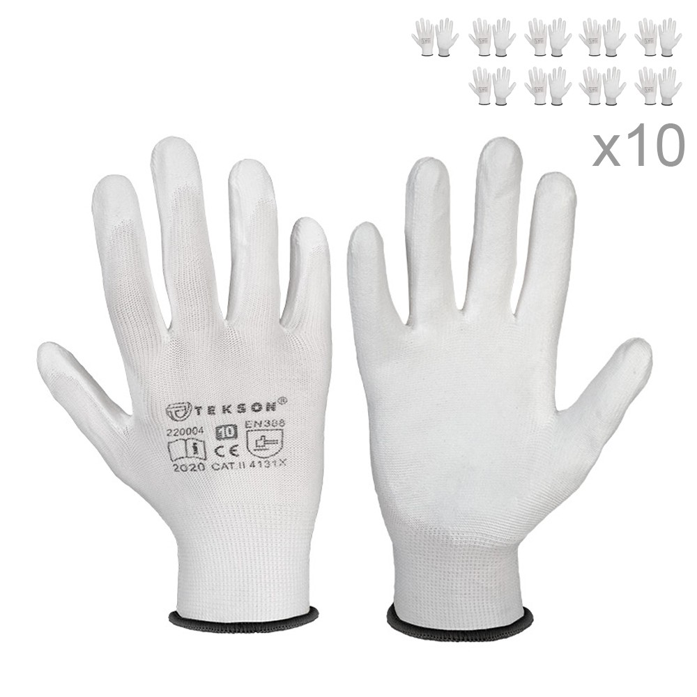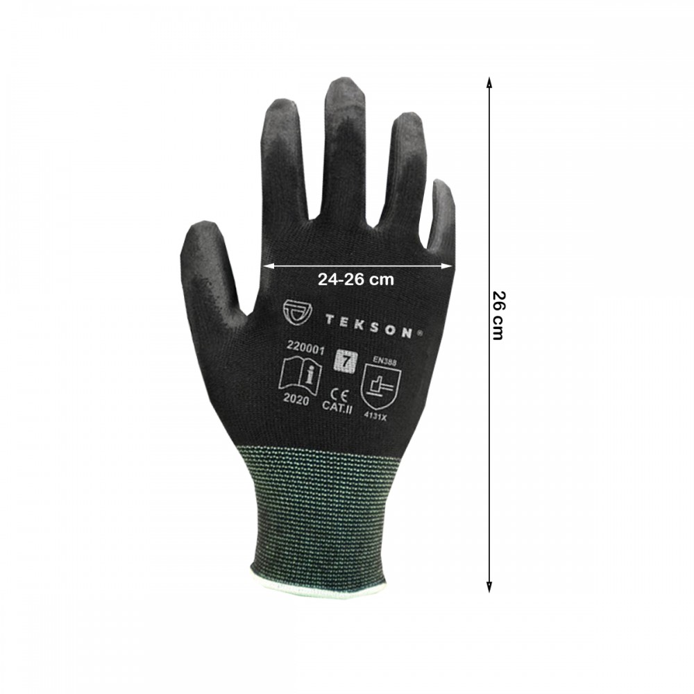 | bulletpointB | Gants en polyester enduit de polyuréthane sur la paume et aux extrémités des doigts. Catégorie de protection II. |