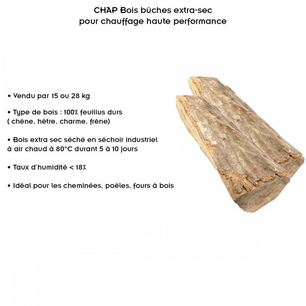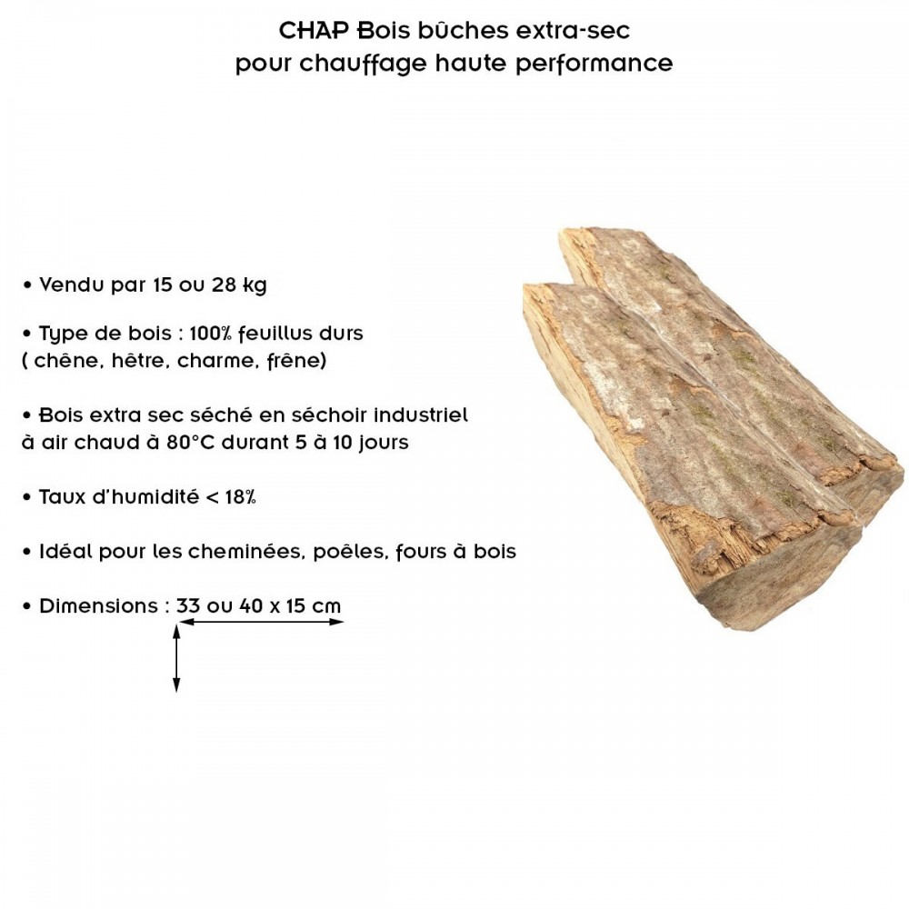 Bûche 25, 33, 40 et 50 cm : 15 kg ou 28 kg.