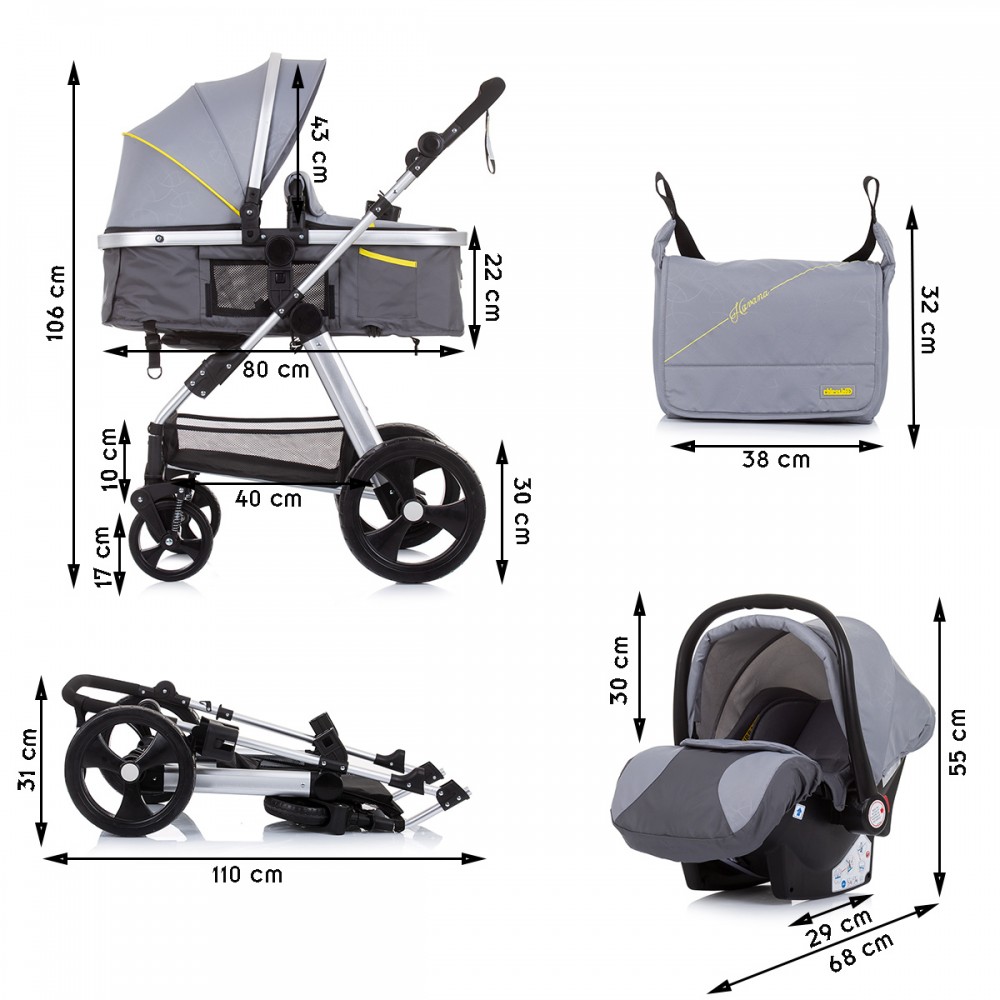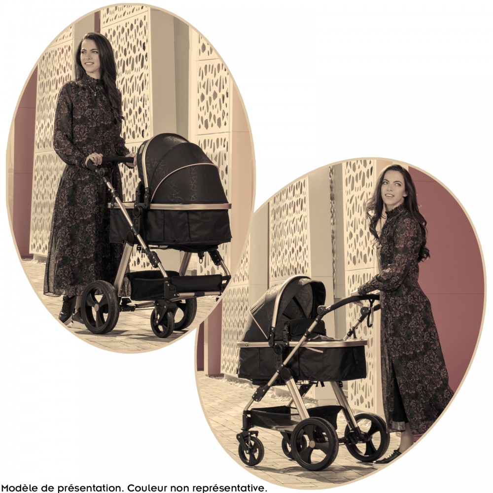 Cette poussette 3en1 présente l'avantage de s'adapter à la croissance de l'enfant. Cet ensemble inclut 1 cadre poussette, 1 nacelle évolutive en assise, 1 cosy-auto i-Size de 40 à 85 cm ainsi qu'un sac à langer.