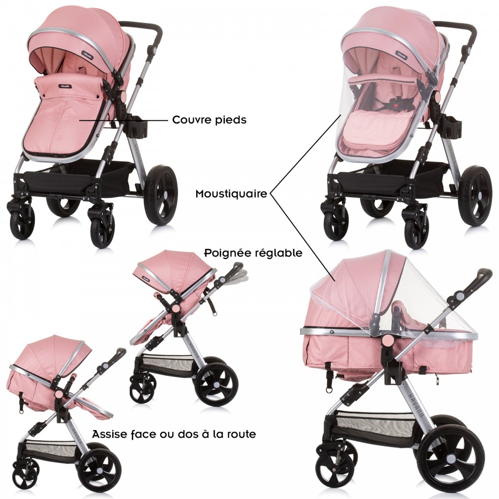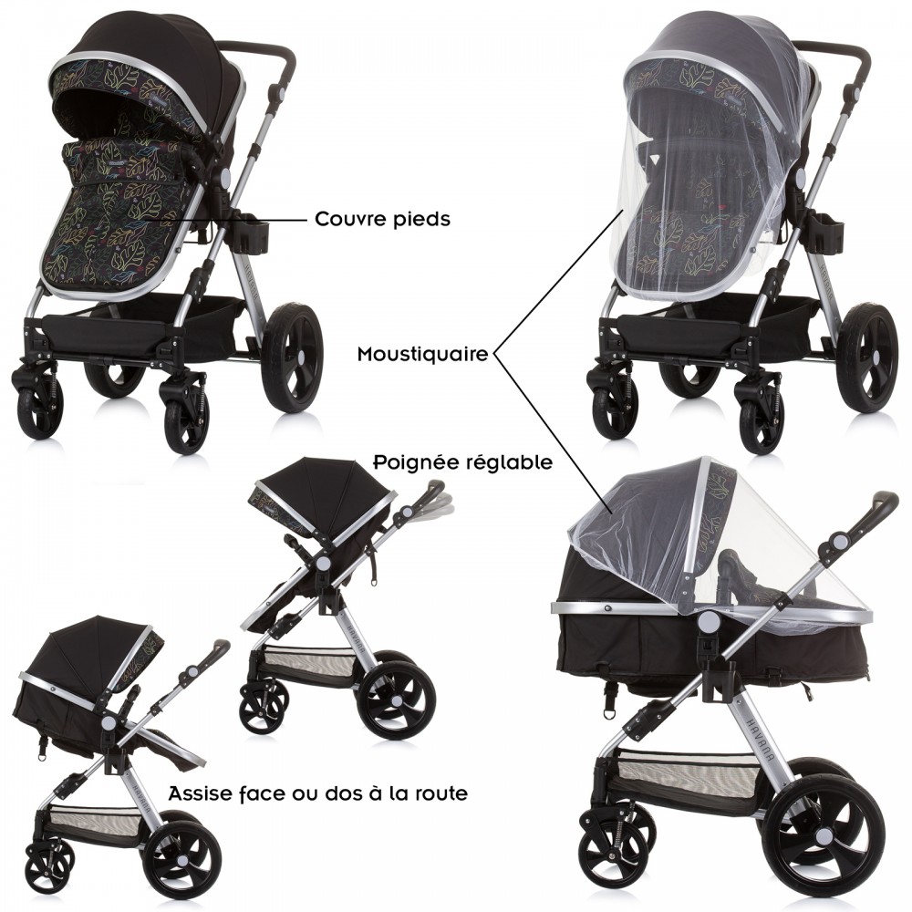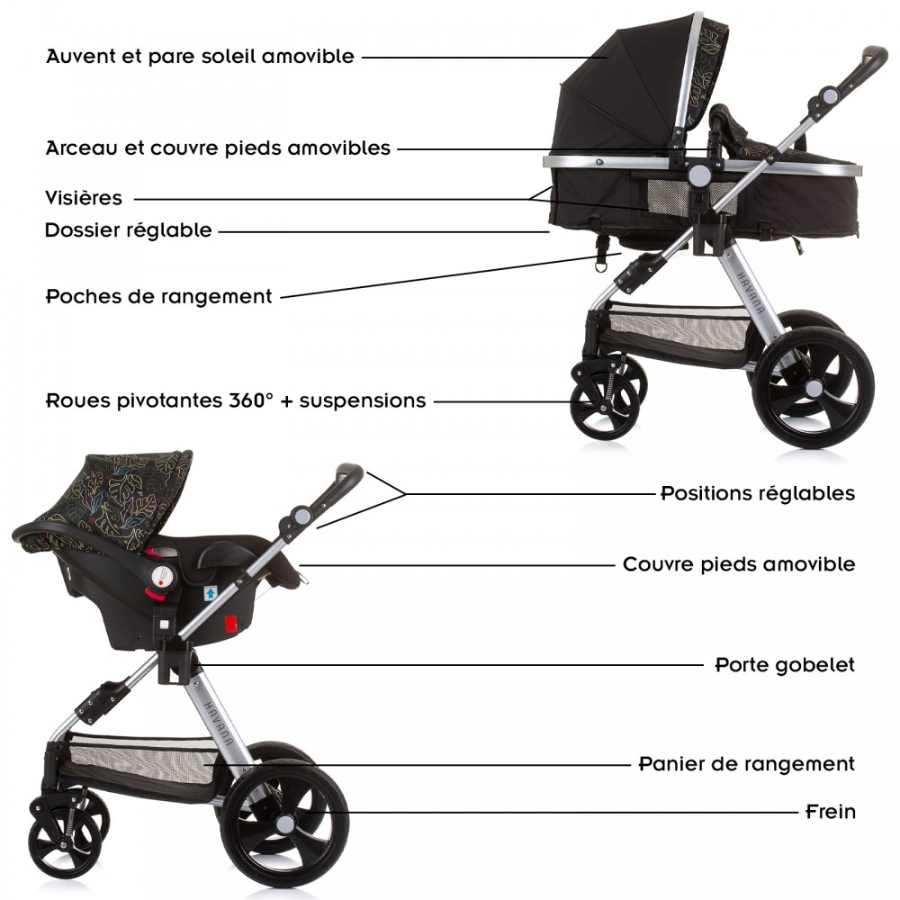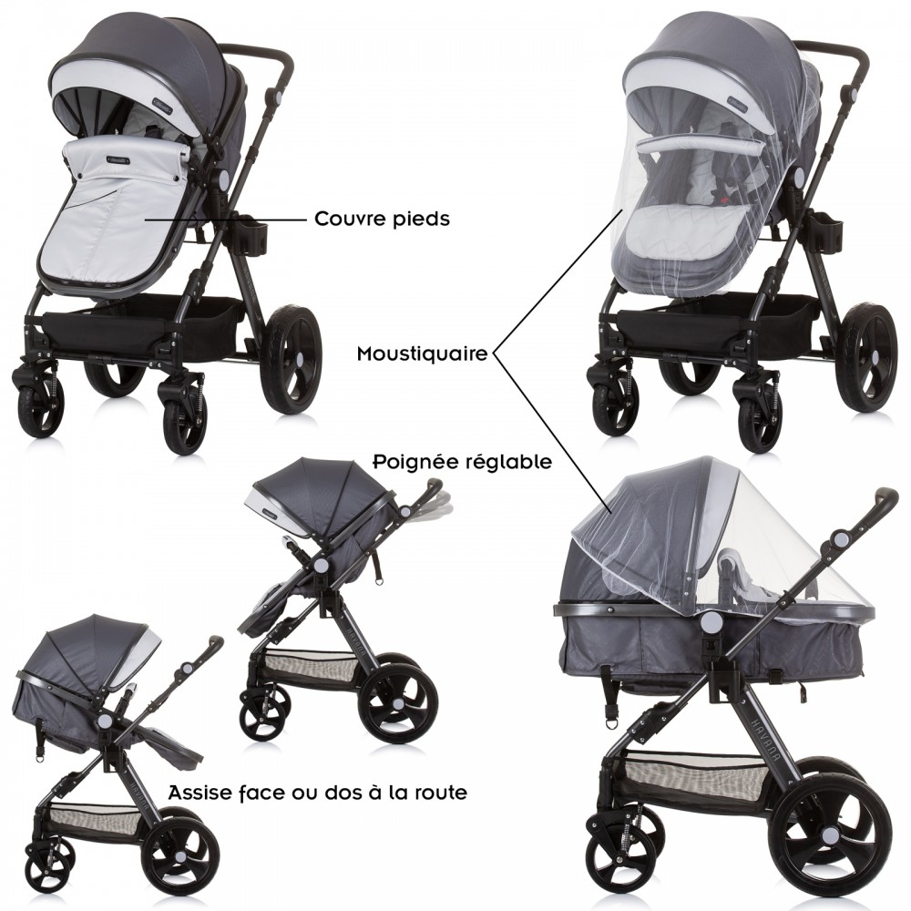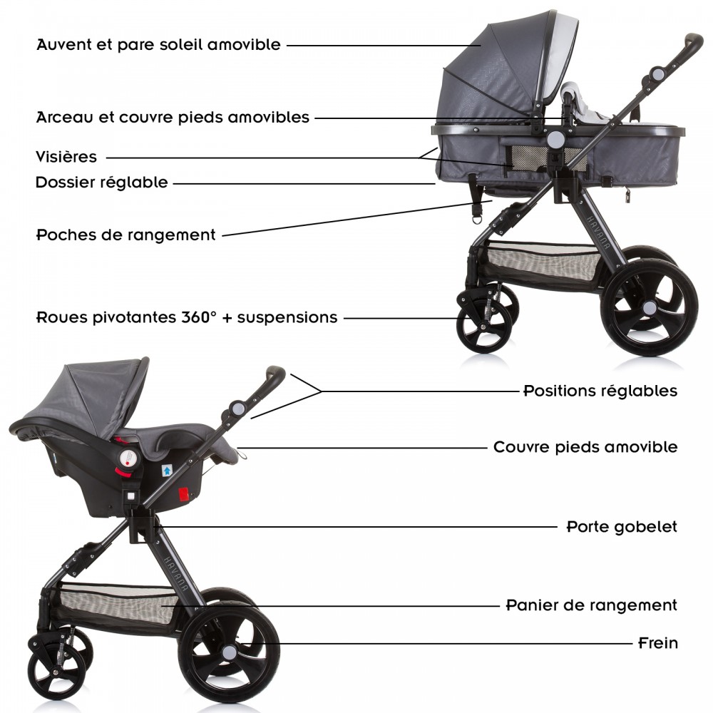 | bulletpointD | Nacelle transformable. Dossier réglable. Filet de circulation d'air. Capote rétractable. Arceau et chancelière amovibles. |