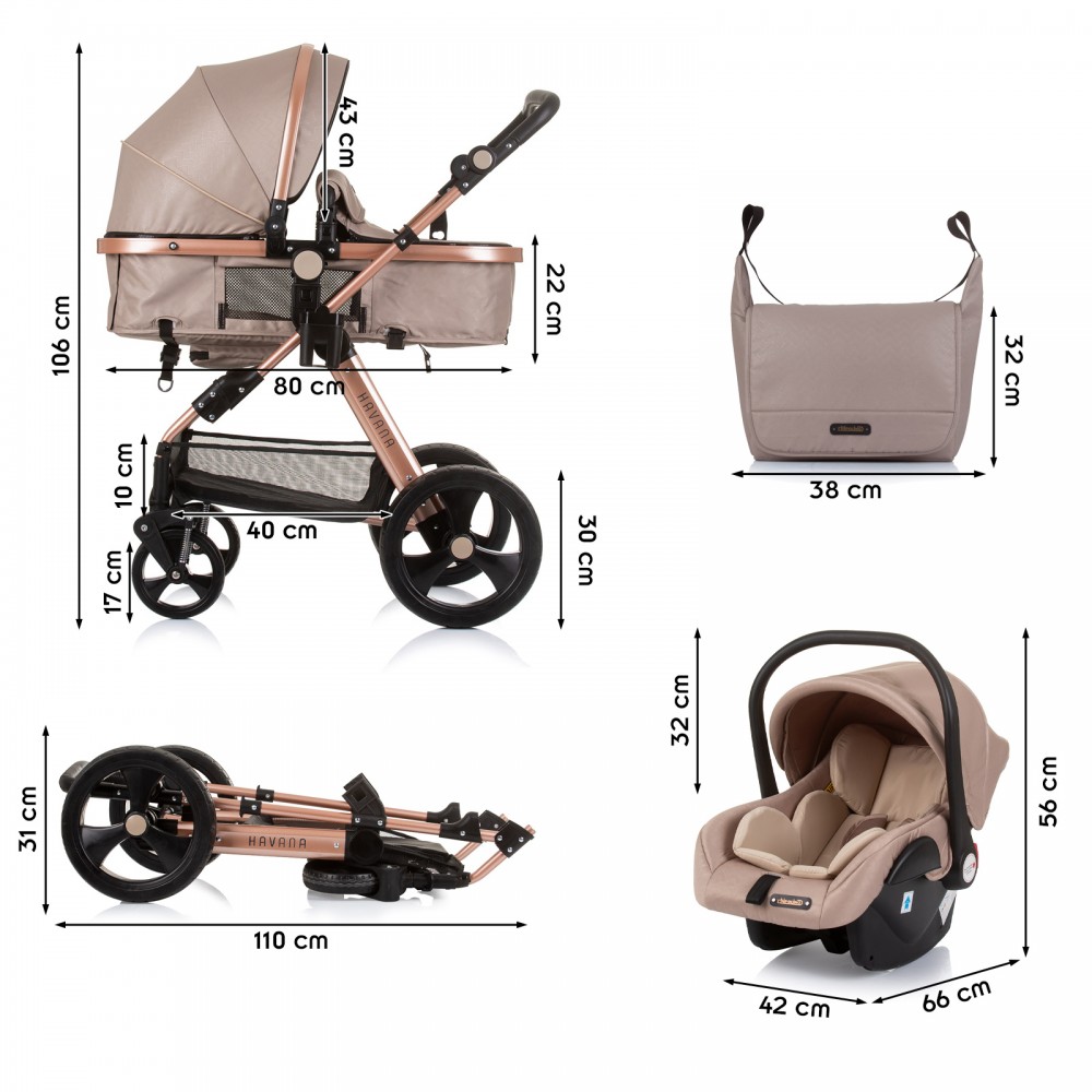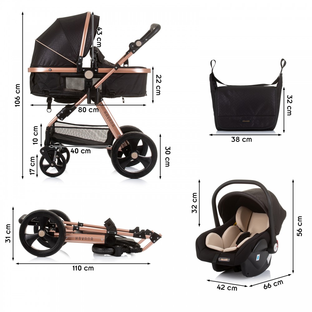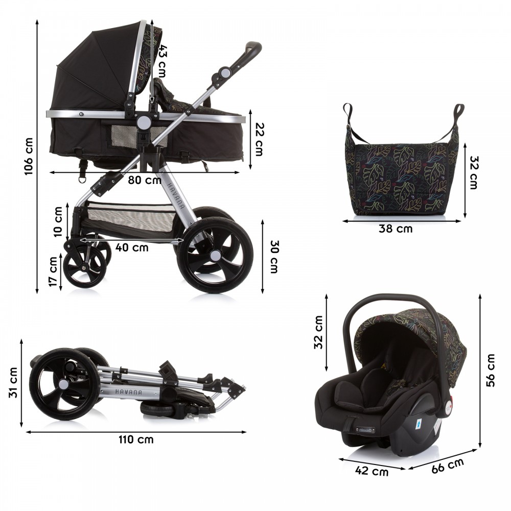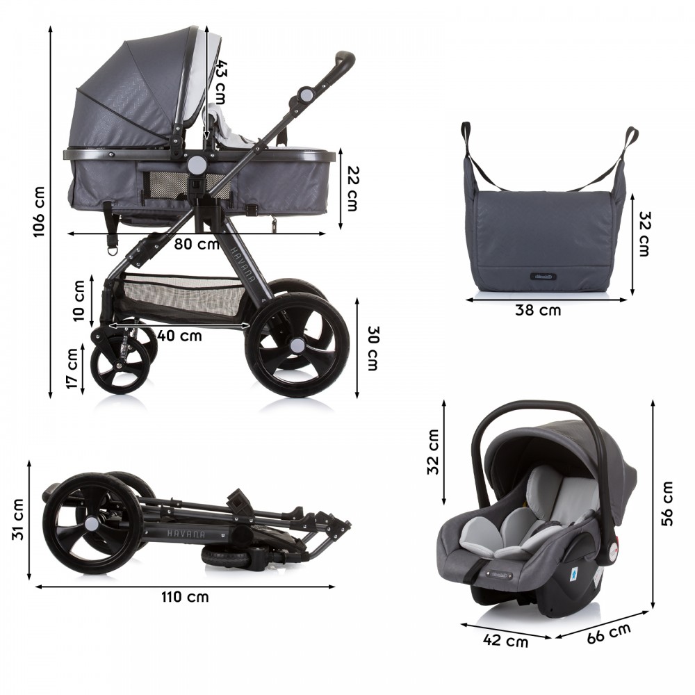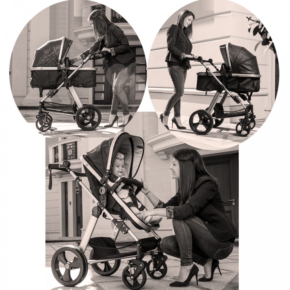 | bulletpointA | Poussette combinée 3en1 ; nacelle couchée / assise + 1 cosy auto + 1 sac à langer + 1 moustiquaire. De 0 jusqu'à 22 kg. |
