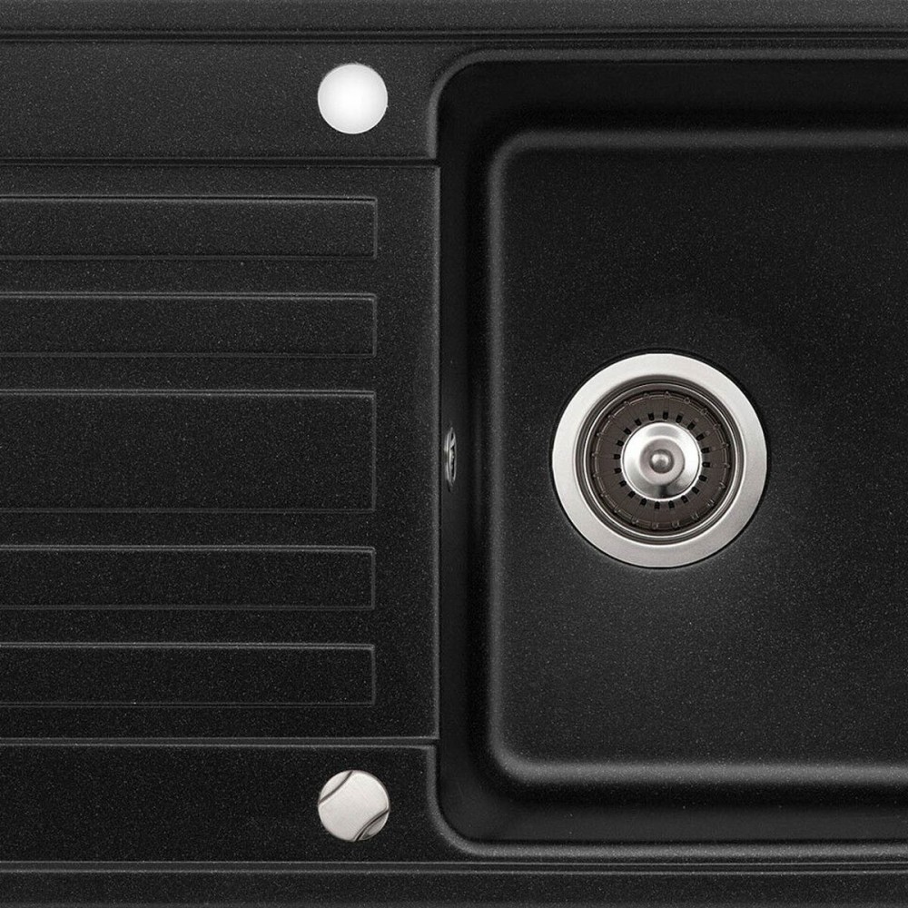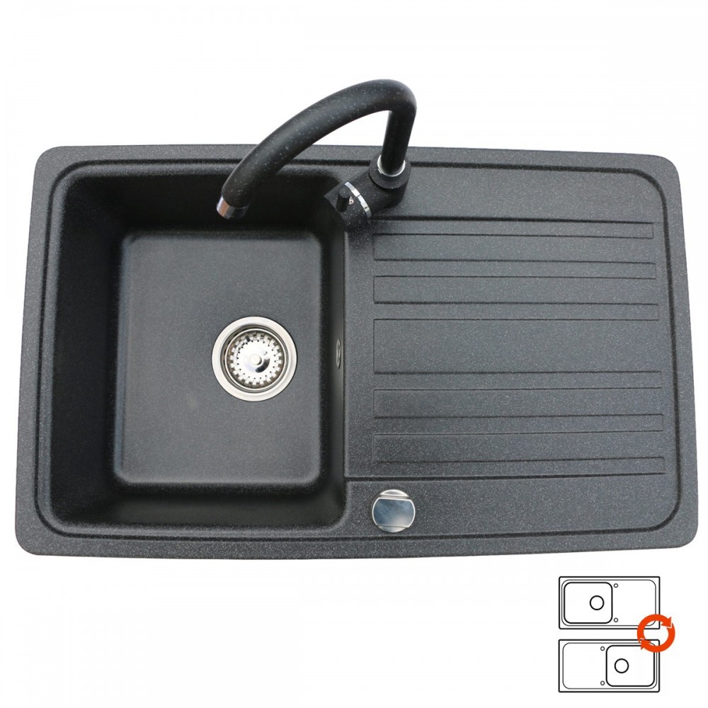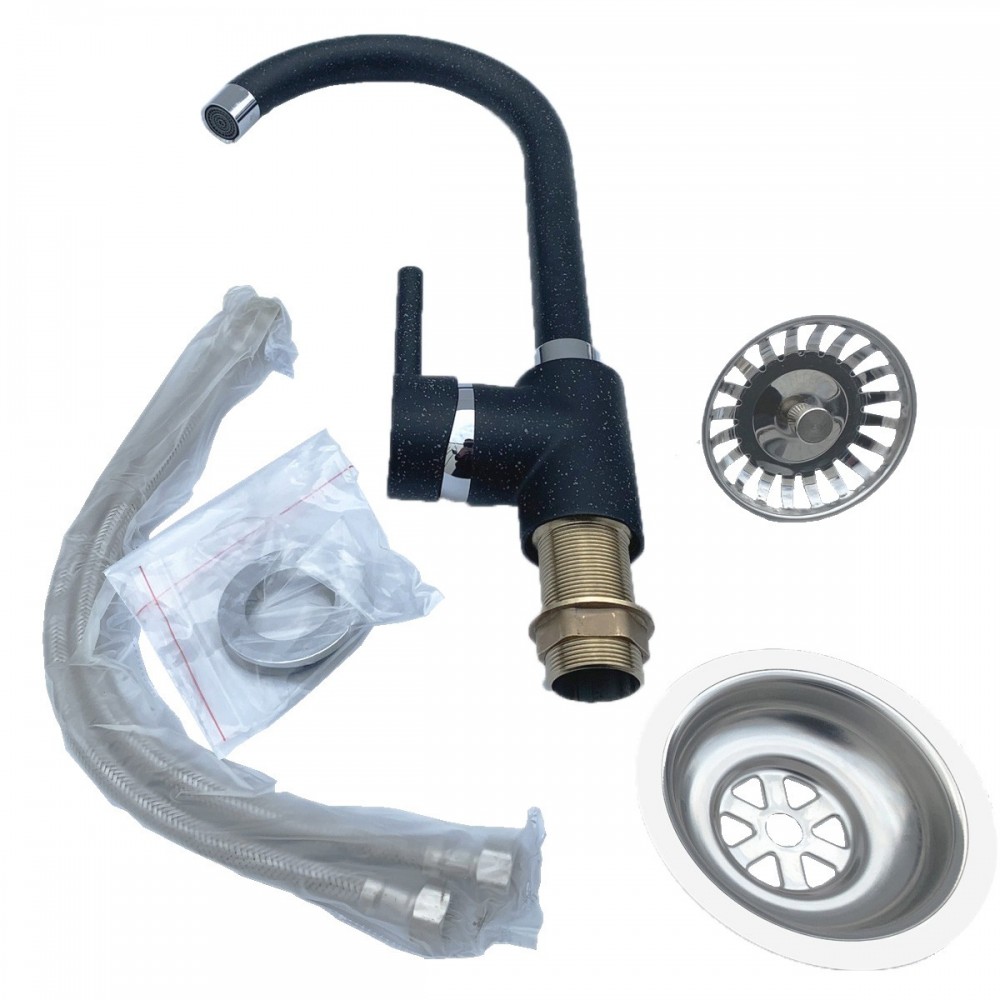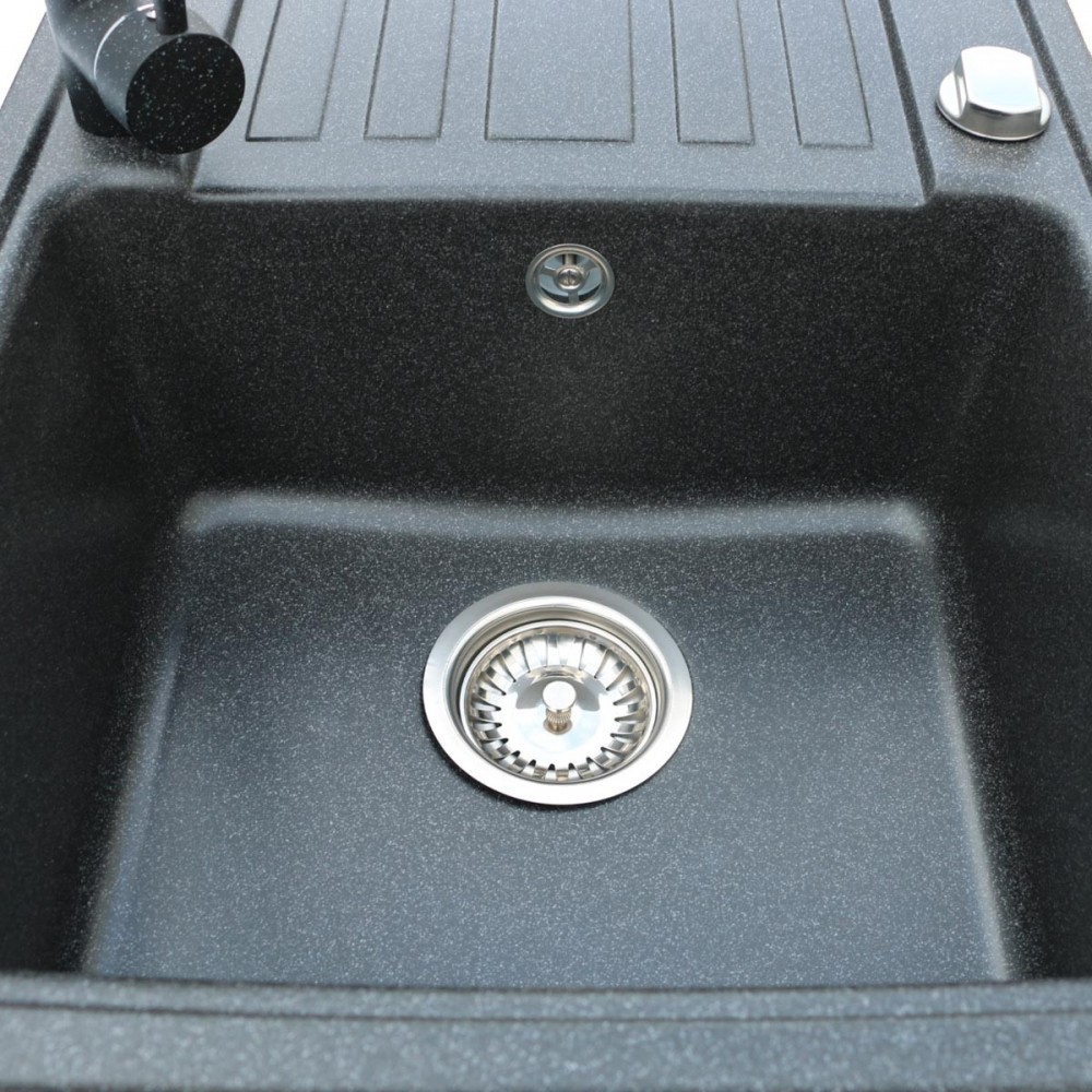 | bulletpointA | Évier en granit à composé d'un évier profond, d'un égouttoir spacieux et d'un robinet mitigeur en U avec embout chromé. |