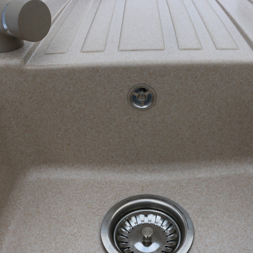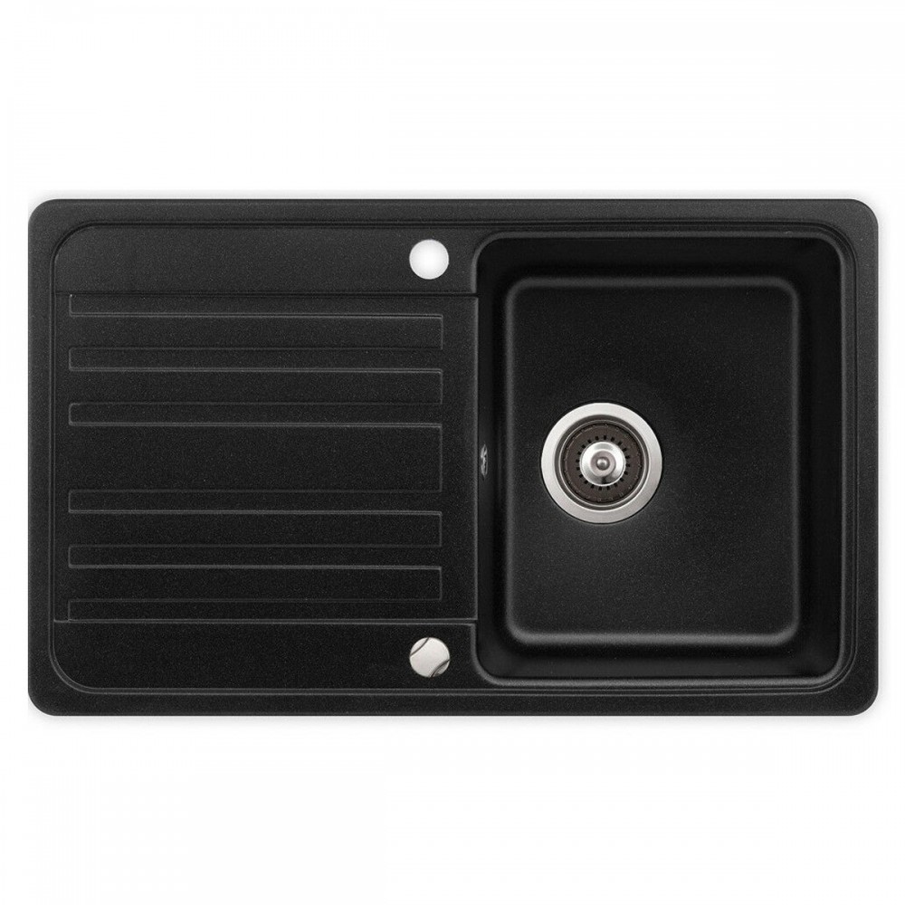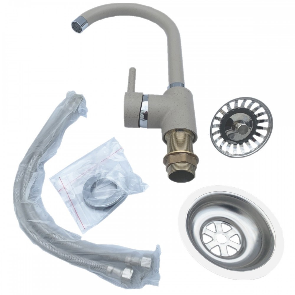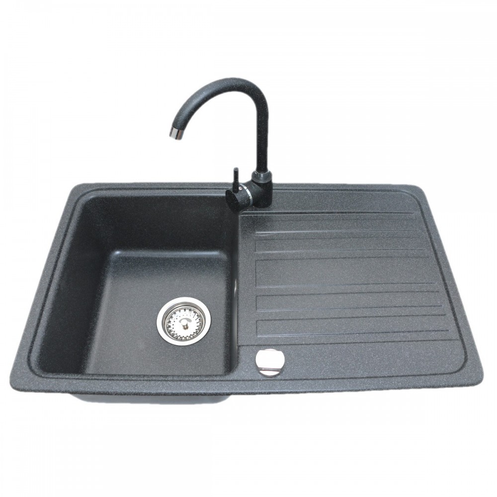 | bulletpointA | Évier en granit à composé d'un évier profond, d'un égouttoir spacieux et d'un robinet mitigeur en U avec embout chromé. |