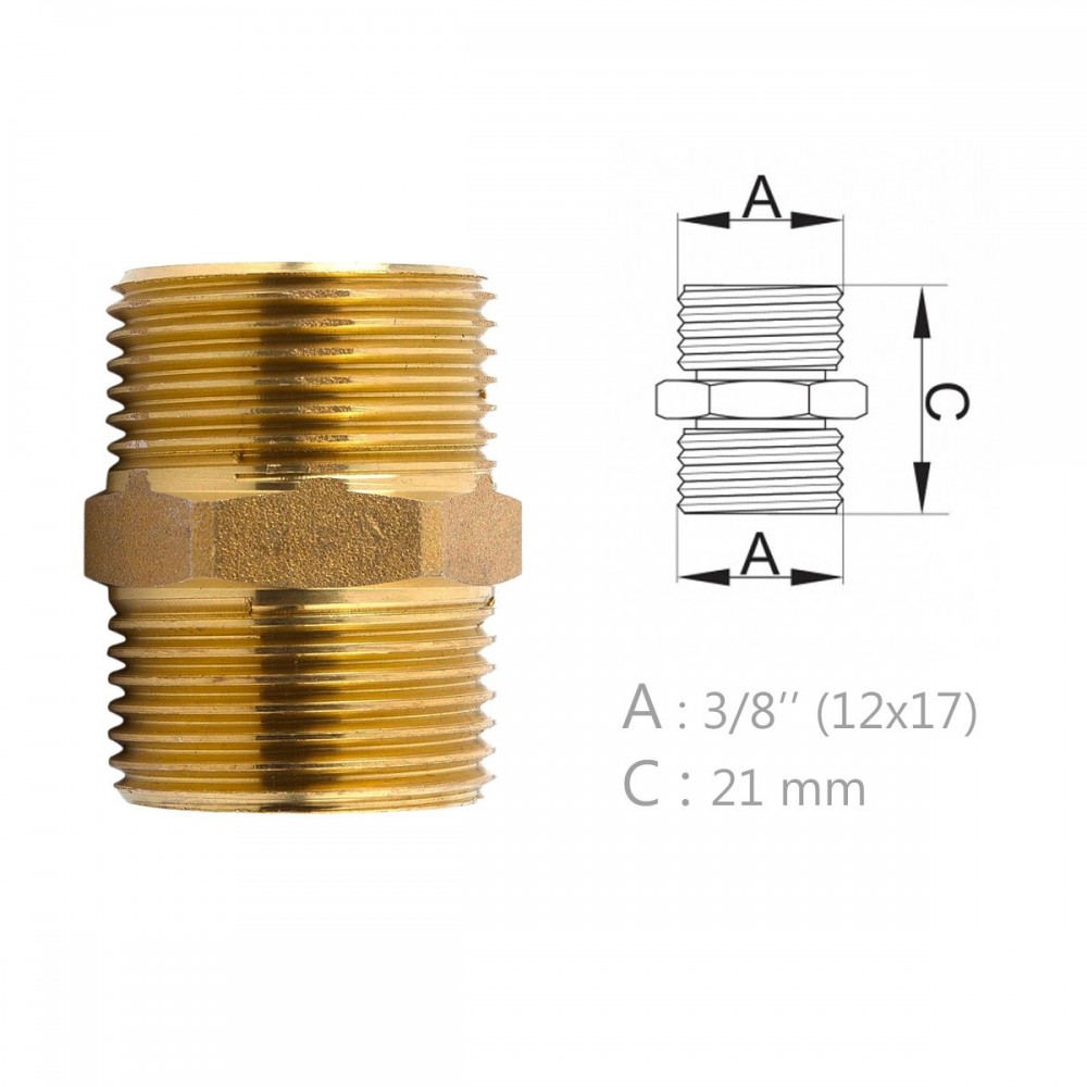 | bulletpointA | Raccord mamelon en laiton à visser. Raccordement égal mâle mâle. |