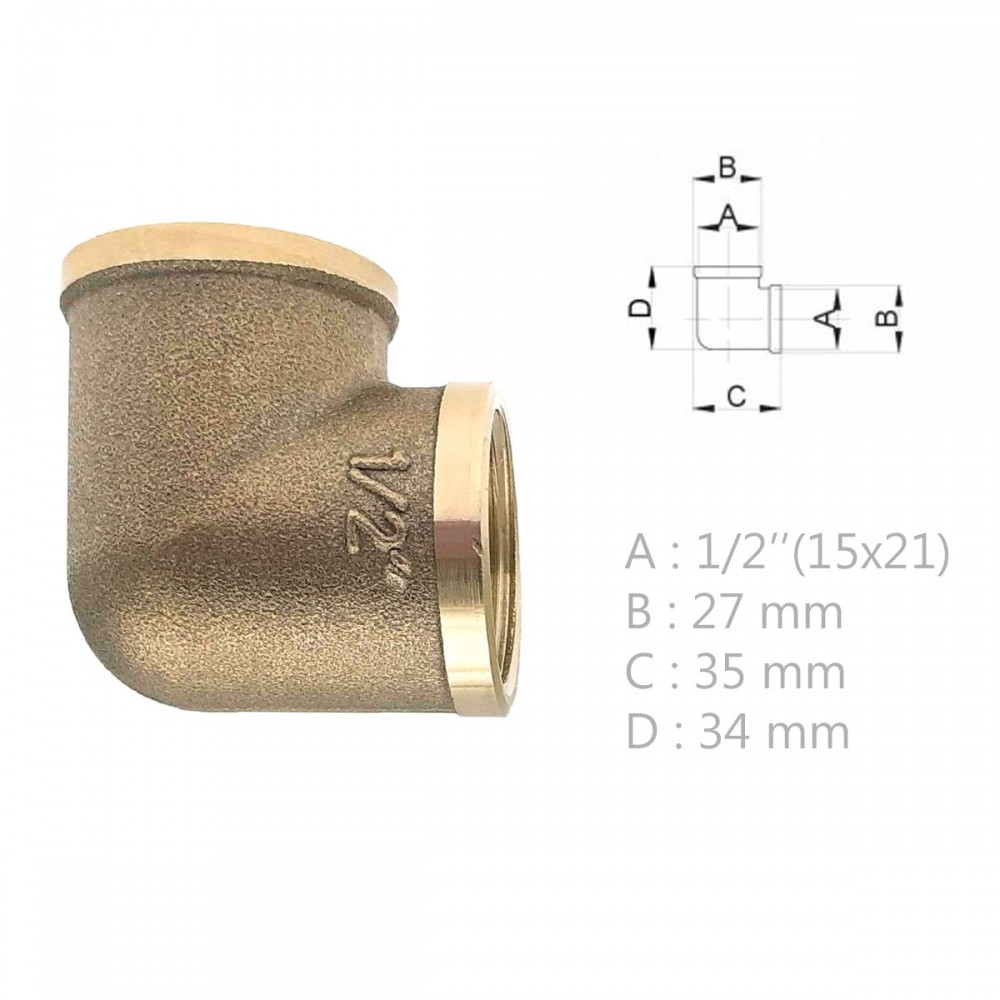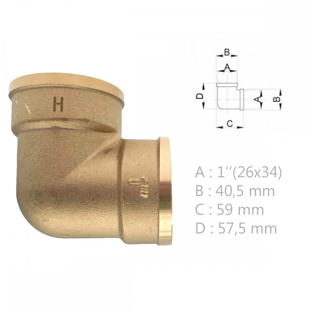 | bulletpointA | Raccord coudé 90° à visser en laiton. Embouts femelle femelle. |