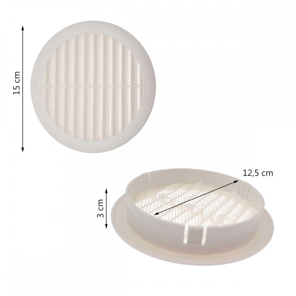| bulletpointA | Grille ronde d'aération Ø 125 mm avec moustiquaire pour tube PVC et gaines. |