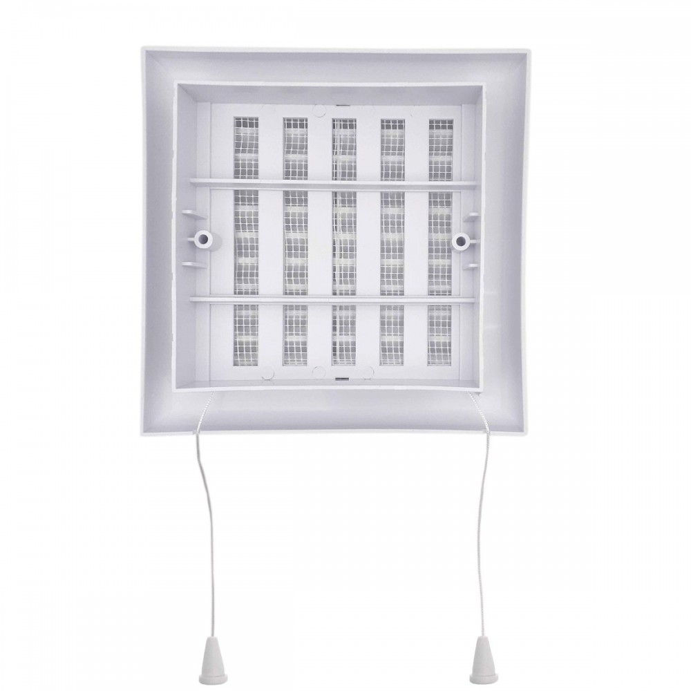 | bulletpointA | Grille d'aération blanche 140x140 mm avec moustiquaire et obturateur manuel. |