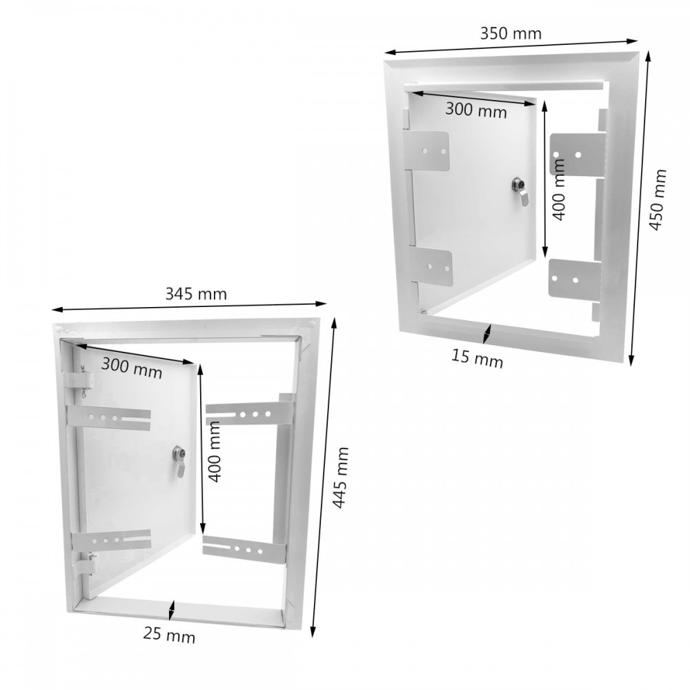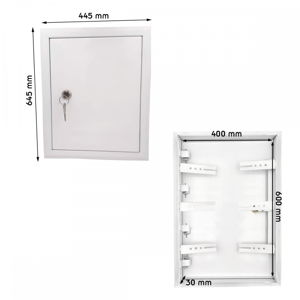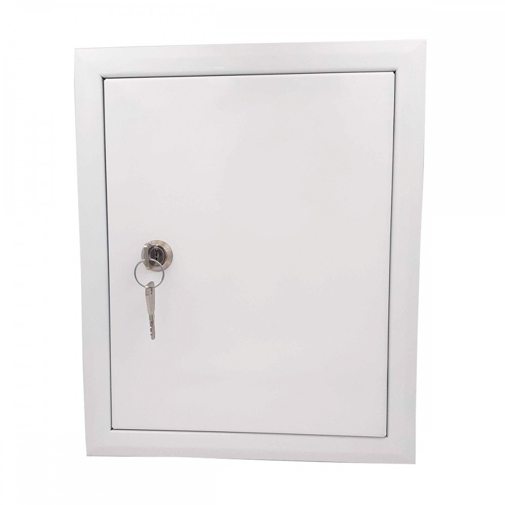 | bulletpointA | Porte d’inspection à clé en tôle galvanisée blanche. |