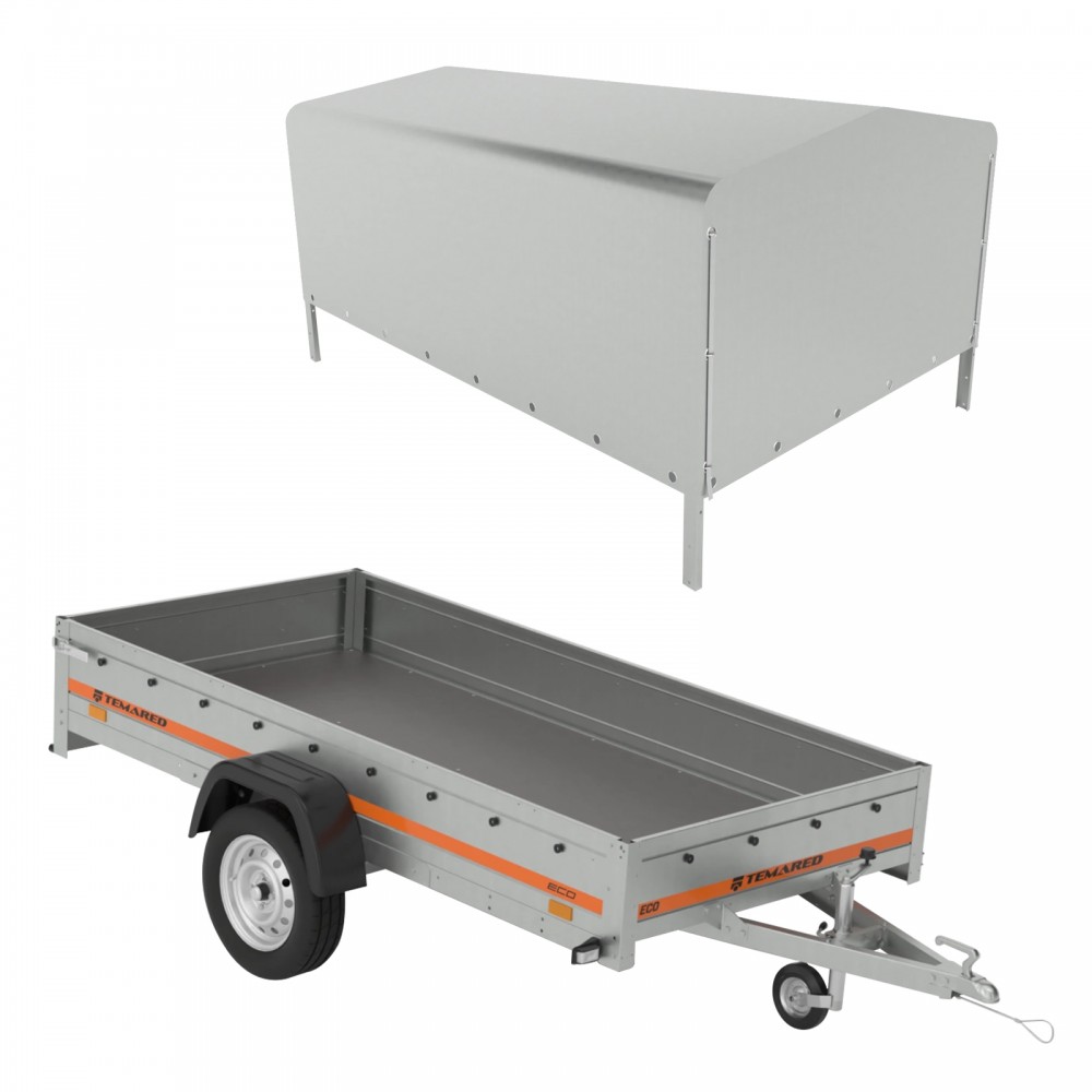 | bulletpointA | Remorque simple essieu. Disponible seule, avec une bâche et son armature ou en version basculante. |