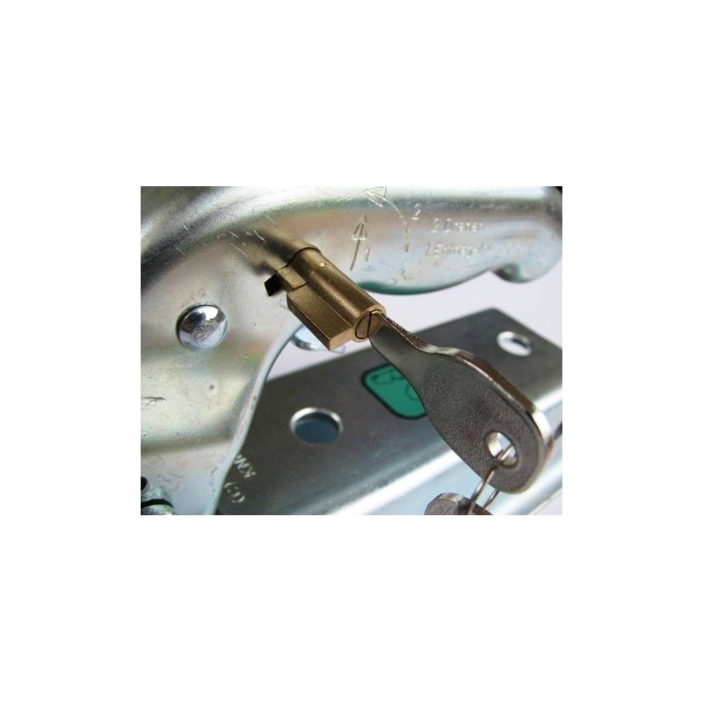 Cet antivol est fournie avec 2 clés. Il permet de sécuriser la remorque attachée à la tête d'attelage.