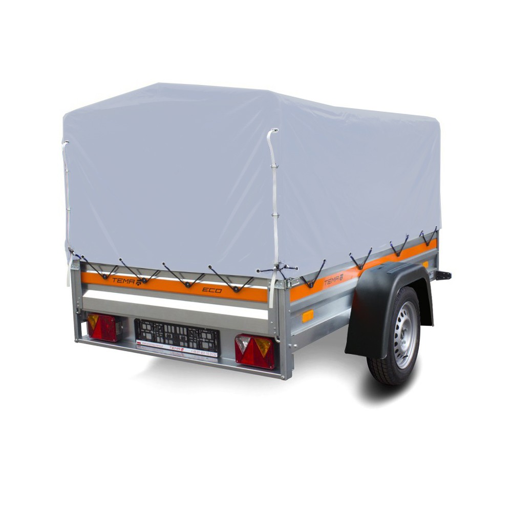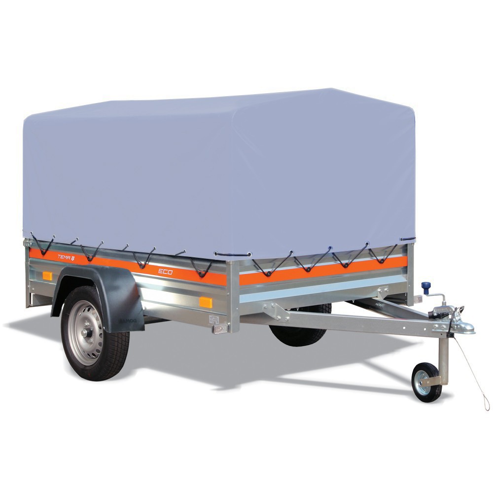 | bulletpointB | Remorque pour voiture 125 X 205 X H.110 cm en acier galvanisé. Bâche haute et roue jockey incluses. |