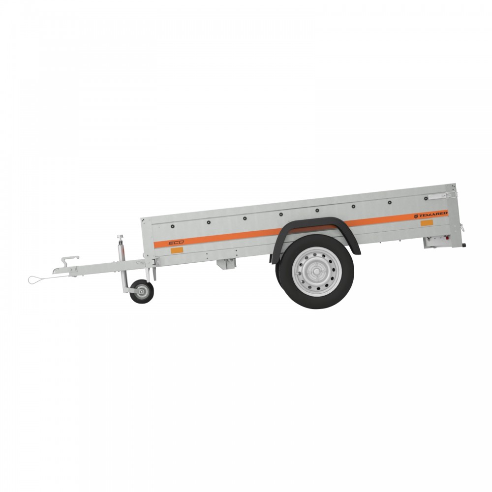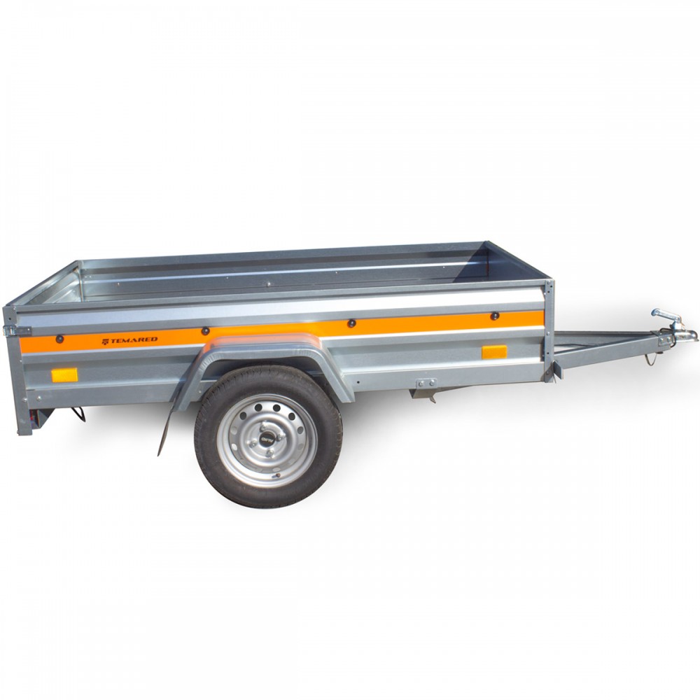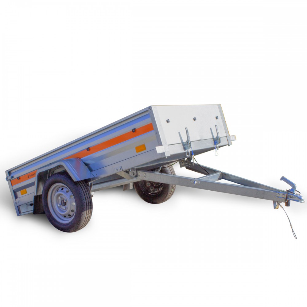 | bulletpointB | Grande remorque avec ridelle arrière amovible et basculante. L'essieu peut supporter jusqu'à 750 kg |