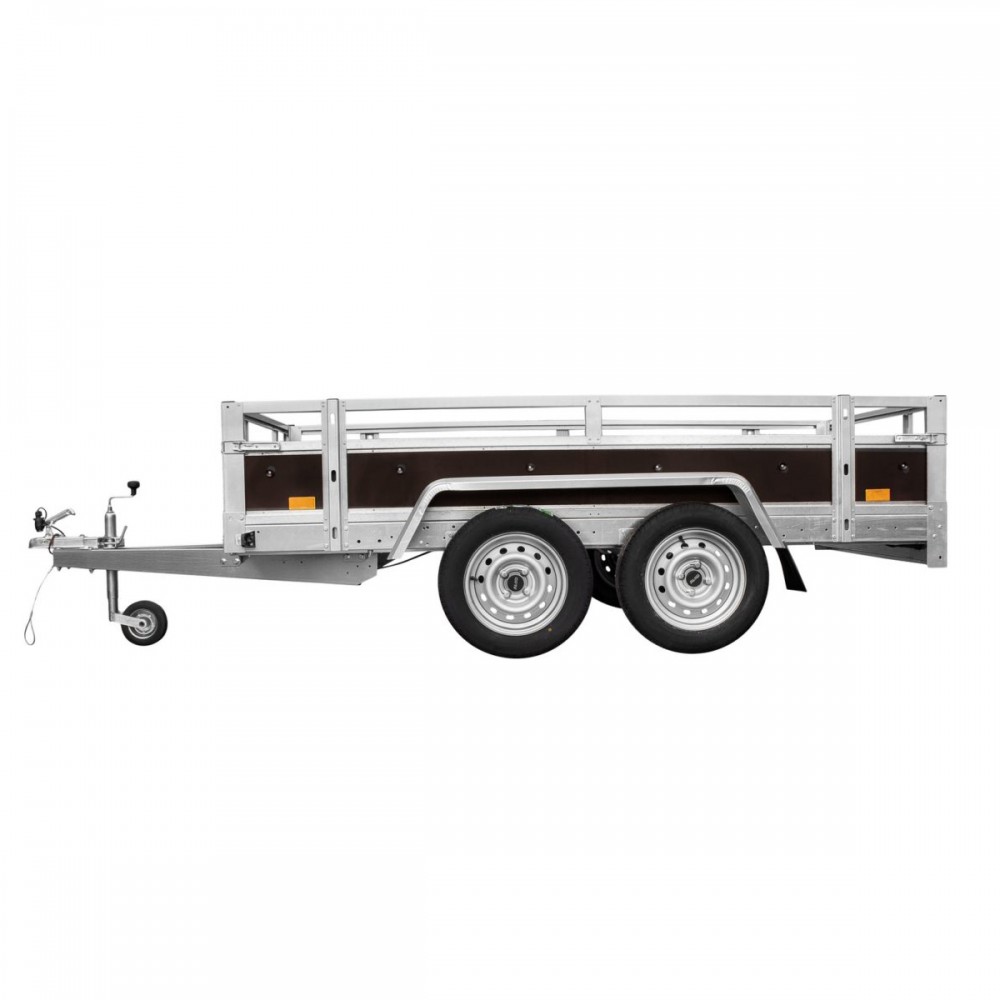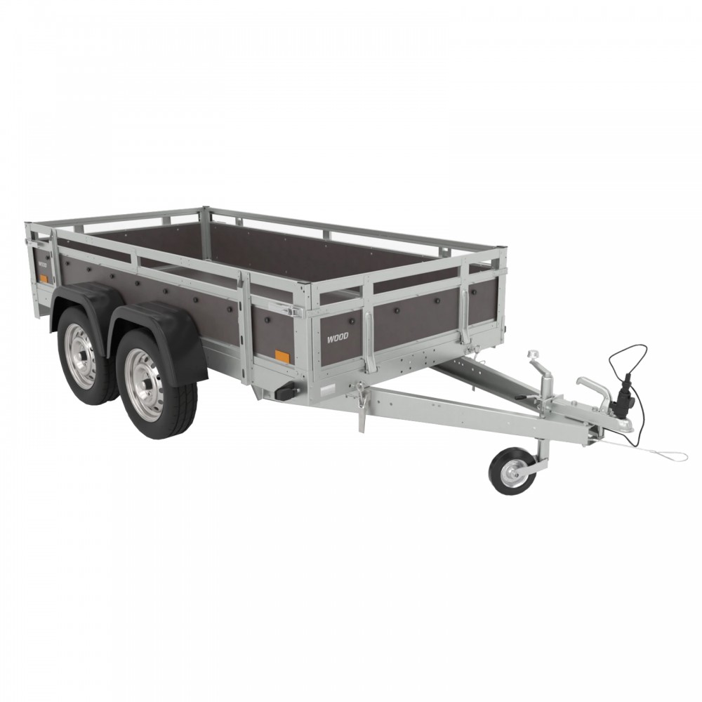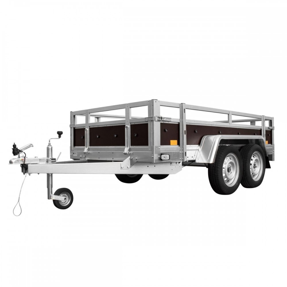 Remorque durable et robuste composée d'une caisse en contreplaqué marine avec plancher anti-dérapant de 9 mm. Le châssis porteur en tôle d'acier profilé de 2,5 mm est galvanisé fixation-vis.