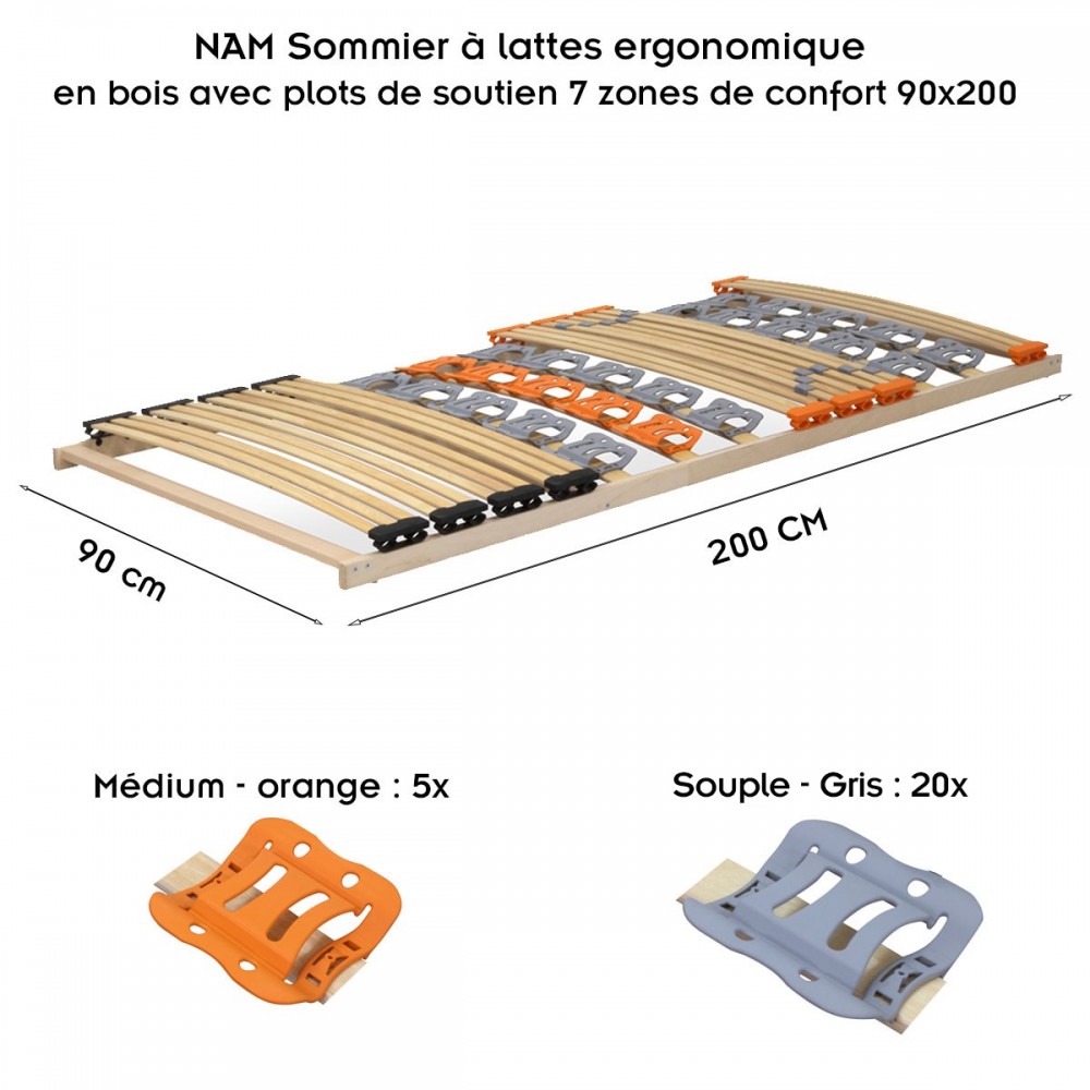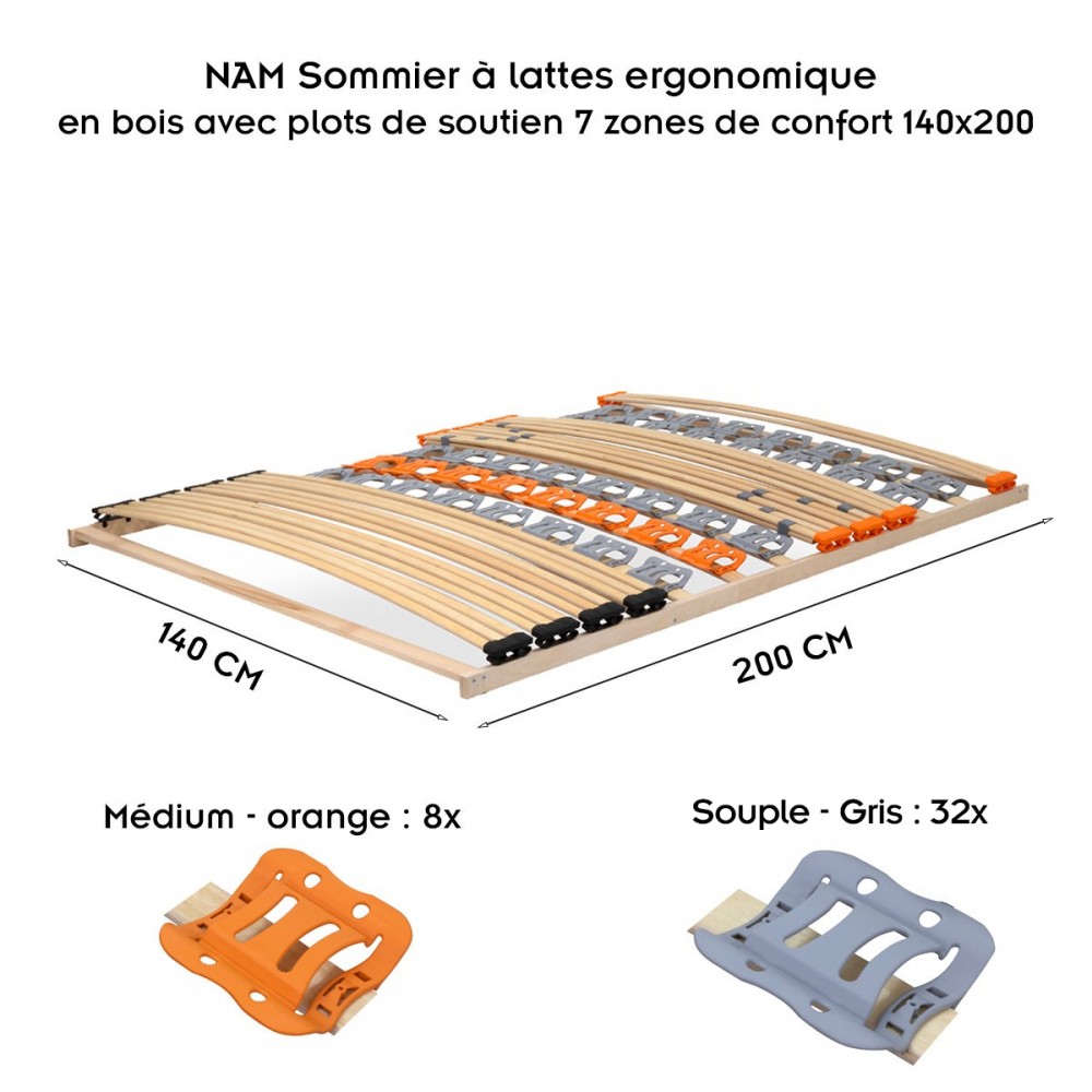 | bulletpointB | Ce sommier ergonomique dispose de 7 zones de confort pour dormir paisiblement. |
