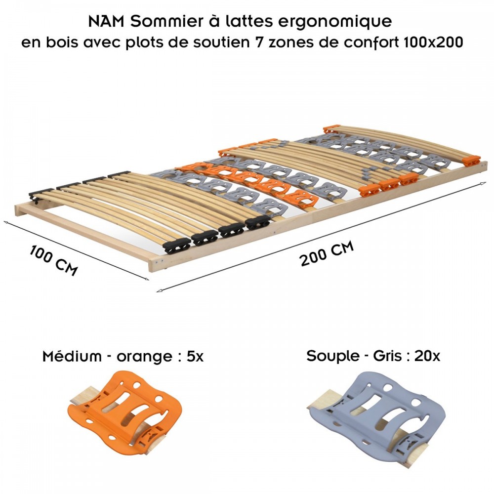 Ce sommier à lattes ergonomique en bois avec plots de soutien est un choix de qualité supérieure pour votre lit.