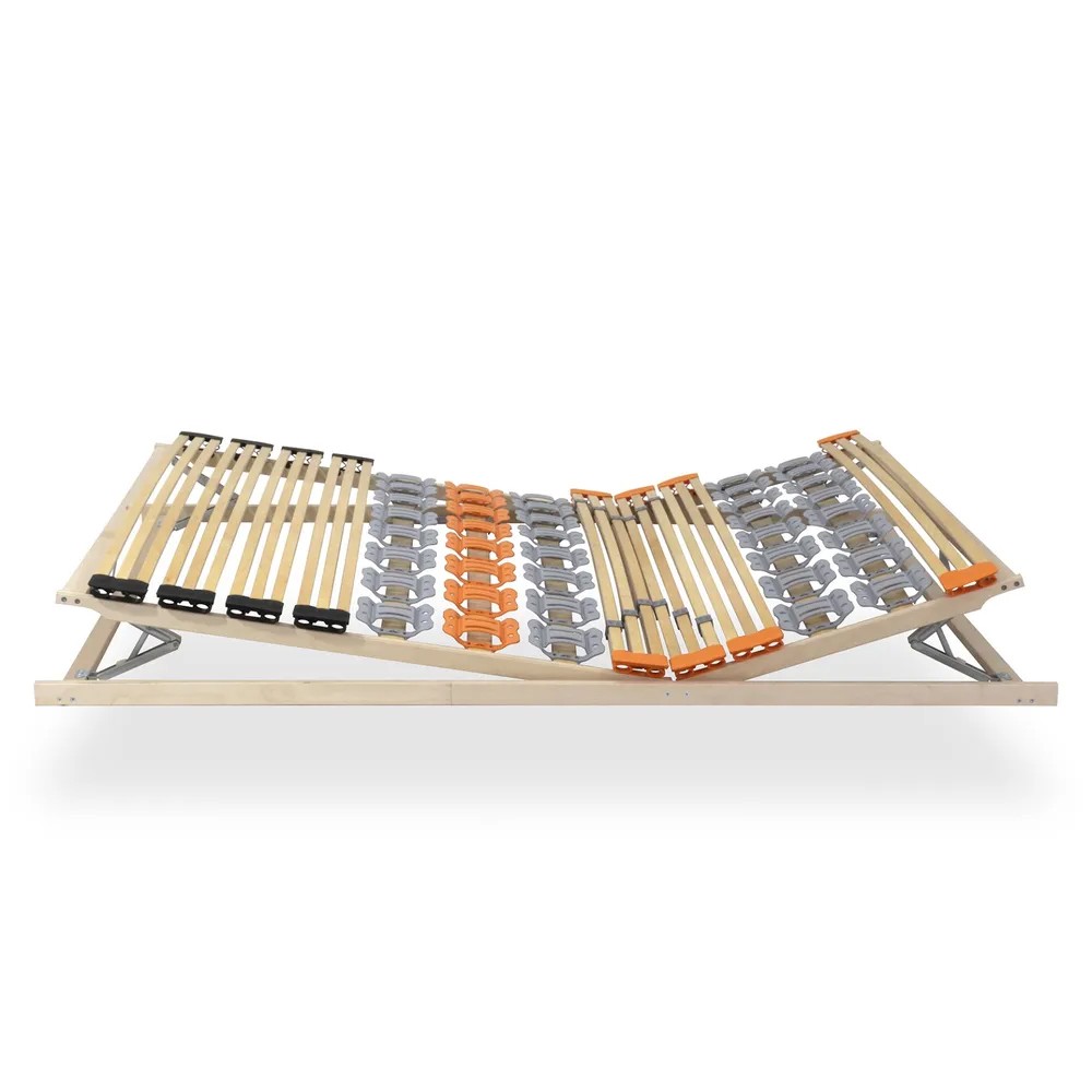 Les lattes en bois, associées aux plots de soutien, sont placées de manière à répartir uniformément votre poids. Ce sommier convient particulièrement aux personnes ayant des problèmes de dos et garantit un soutien efficace et un alignement optimal de la colonne vertébrale.