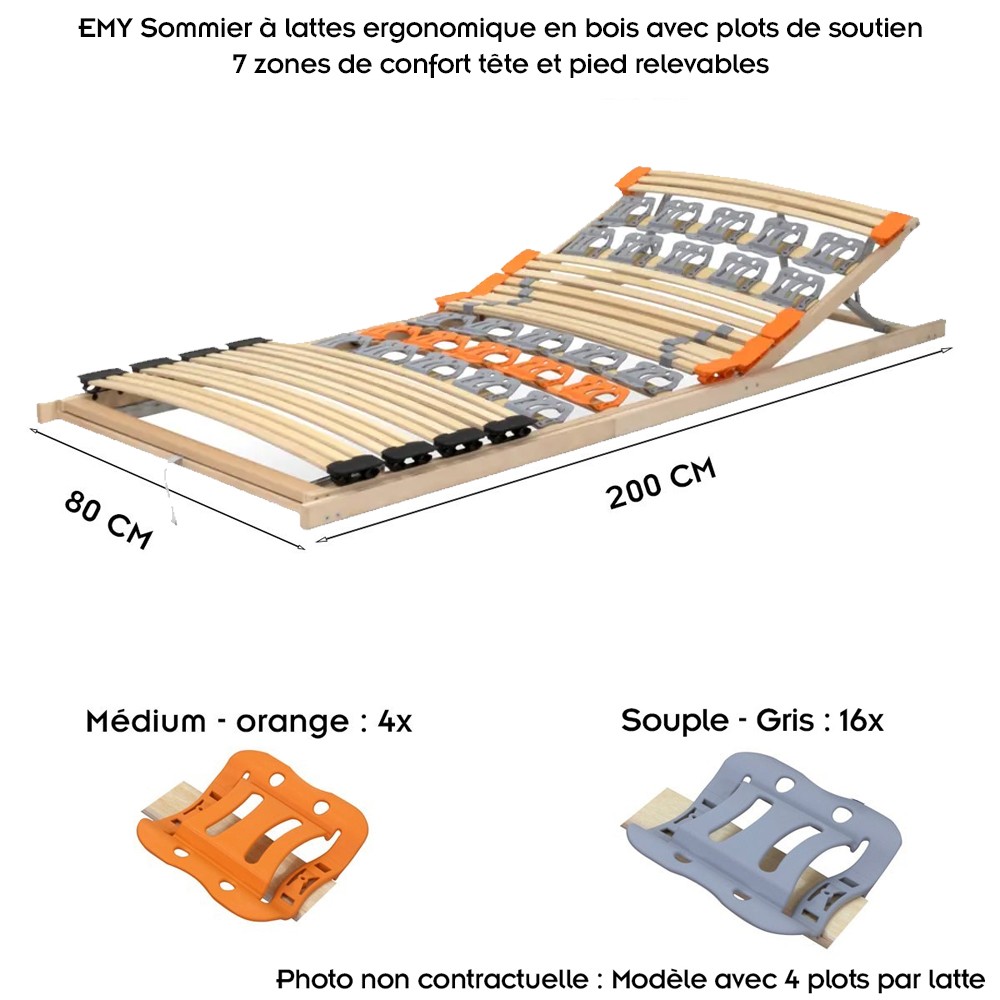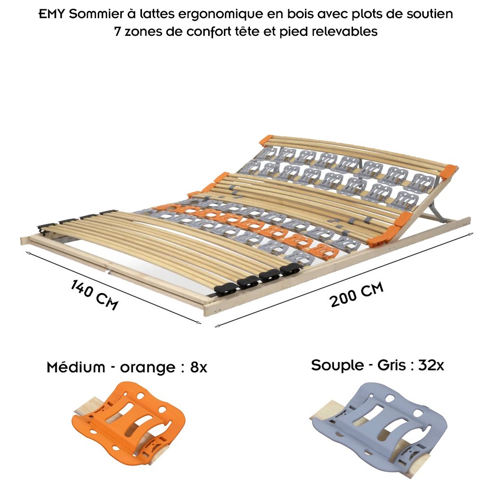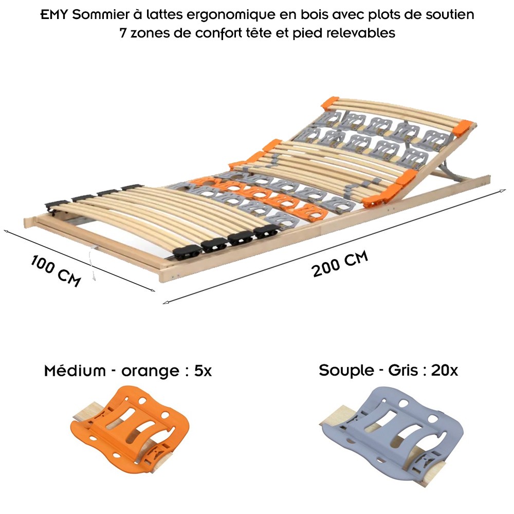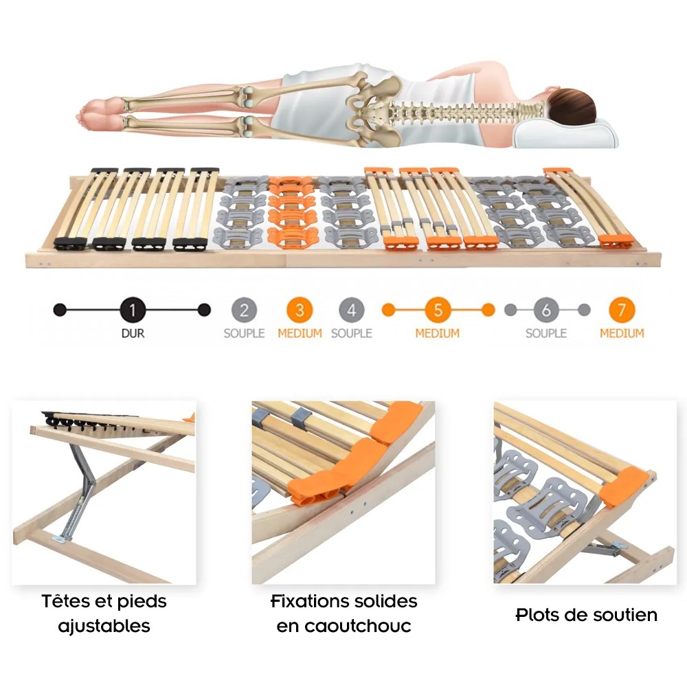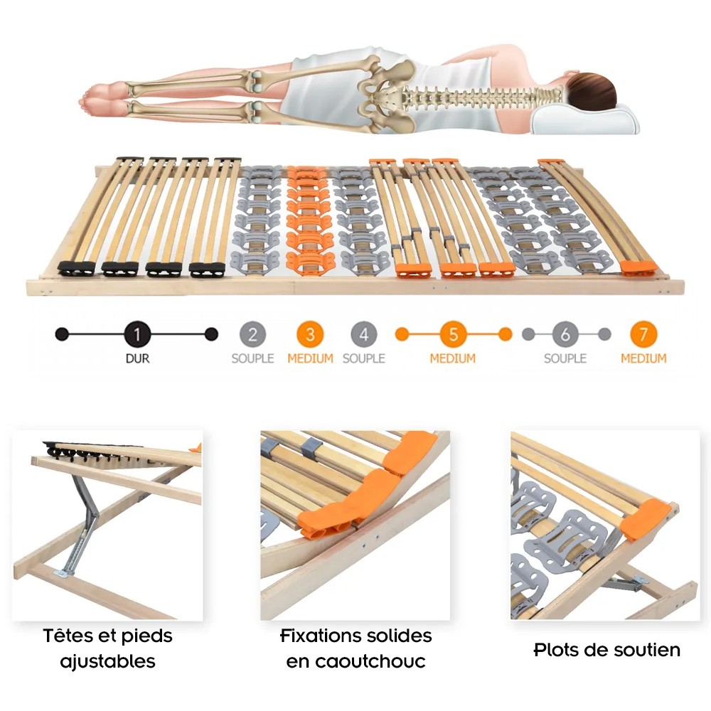 Ce sommier à lattes ergonomique en bois avec plots de soutien est un choix de qualité supérieure pour votre lit.