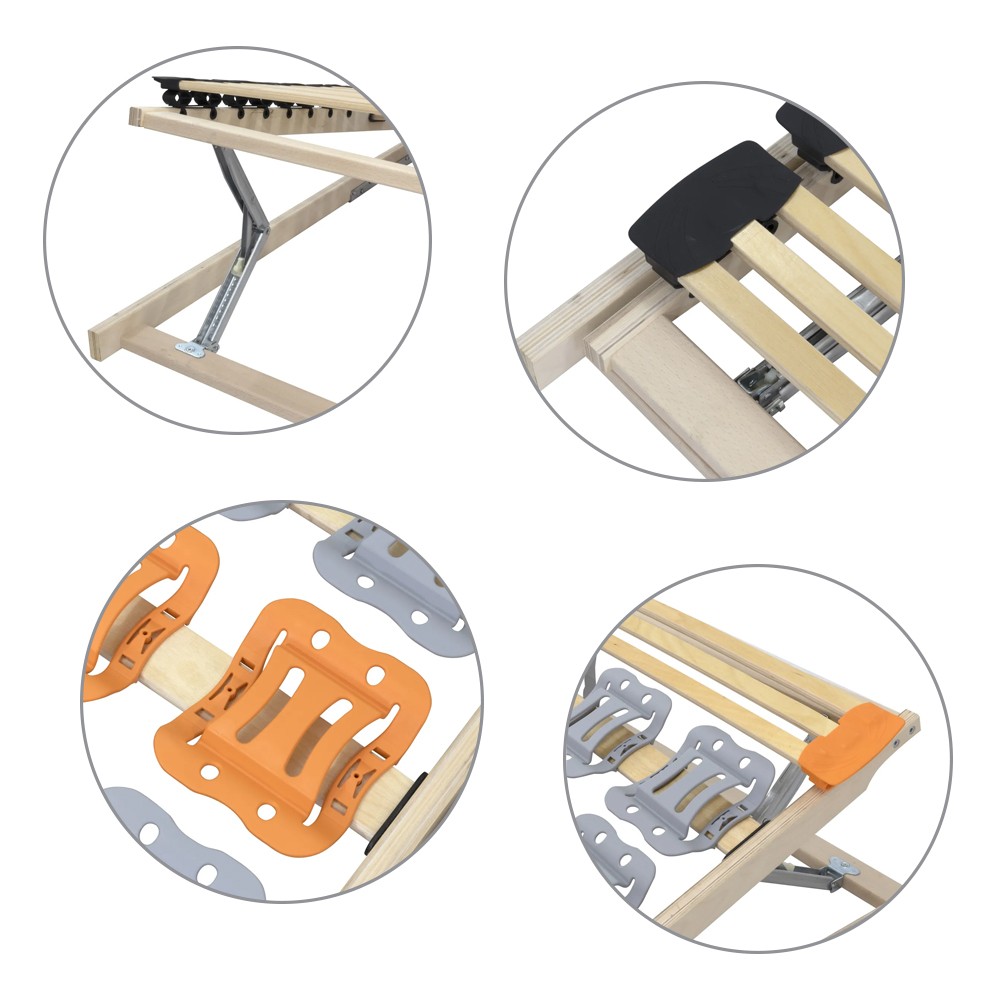 Ce sommier à lattes est facile à installer. Sa structure solide et durable garantit une longue durée de vie. Les embouts des lattes sont antidérapants pour empêcher le matelas de glisser.