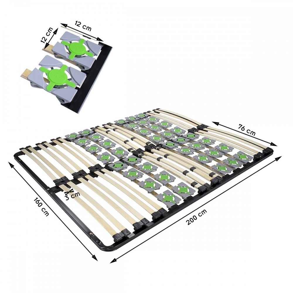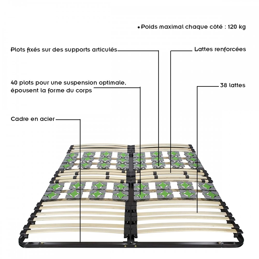 | bulletpointA | Sommier à lattes ergonomique équipé de plots de soutien lombaire et au niveau des épaules. |