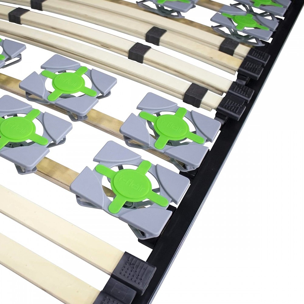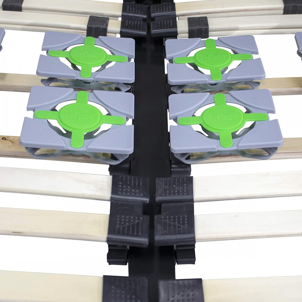 Ce sommier à lattes ergonomique est équipé de plots répartis au niveau de la zone lombaire et des épaules.