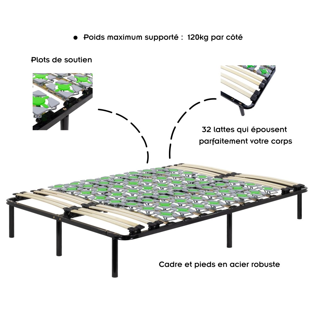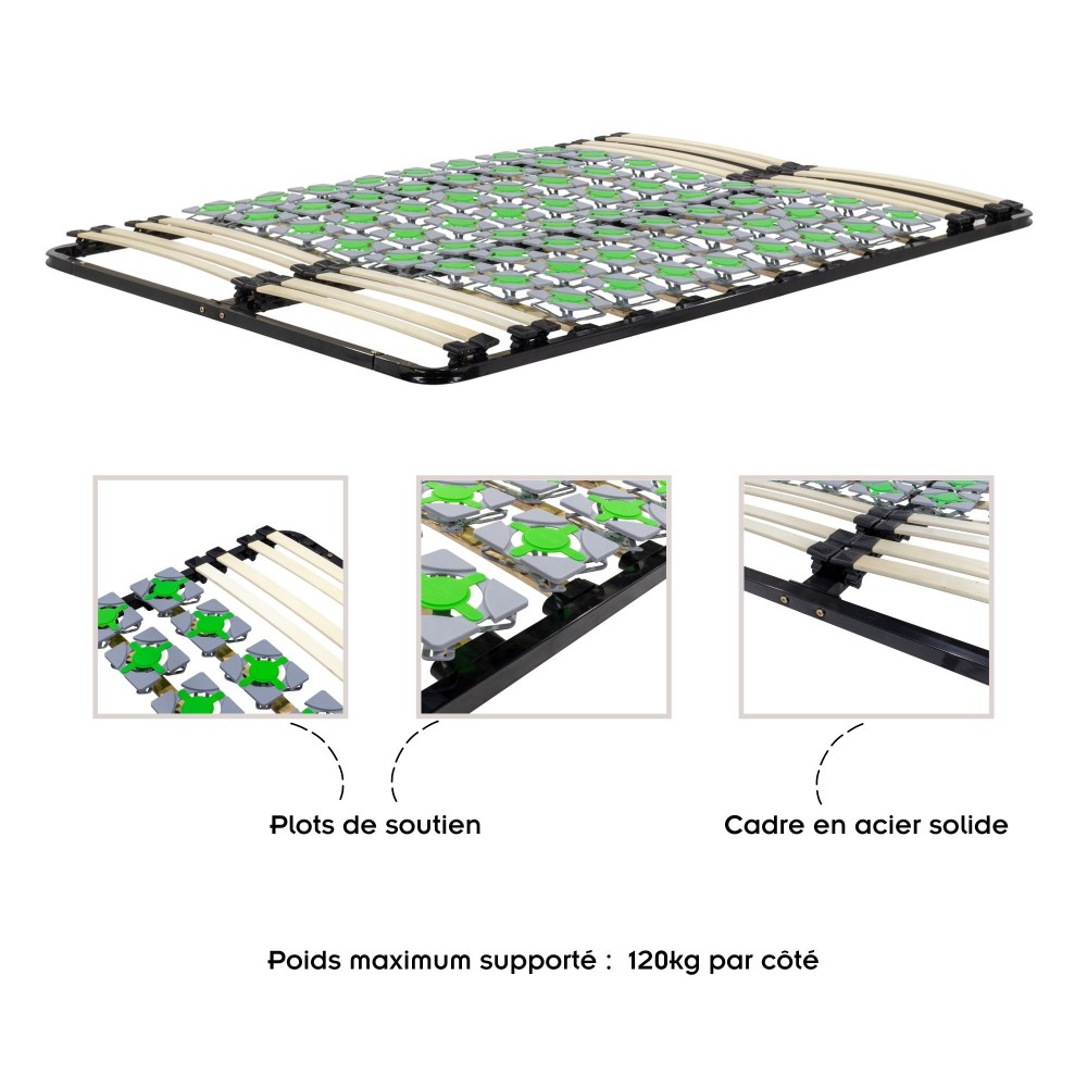 | bulletpointA | Sommier à lattes avec plots de soutien. Plusieurs dimensions disponibles. Pieds en option. |